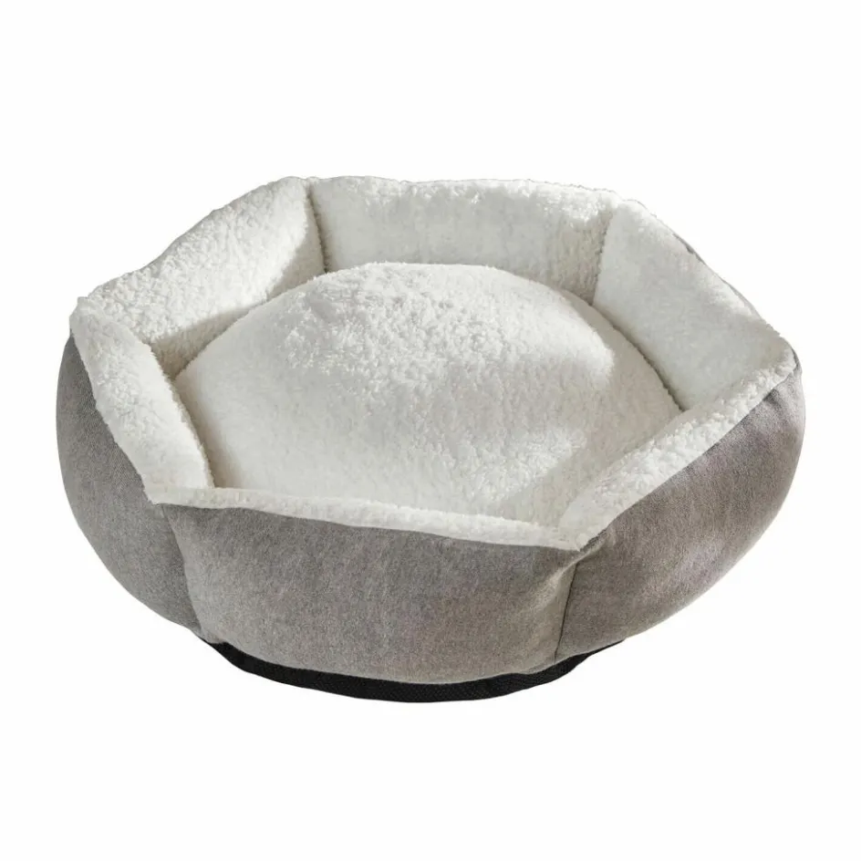 Dieses Haustierbett ist wie gemacht für ruhige Stunden, verträumtes Dösen und tiefenentspanntes Schlummern. Der Bezug aus Baumwolle zeigt sich außen in modernem Grau – dezent und wohnlich zugleich. Im Inneren erwartet Ihr Liebling ein weiches, cremefarbenes Polster mit flauschiger Oberfläche, das sofort Geborgenheit ausstrahlt. Die sechseckige Form mit leicht erhöhtem Rand schenkt Halt und ein Gefühl von Schutz, fast wie in einer kleinen Höhle. Die rutschfeste Unterseite verhindert lästiges Wegrutschen auf Fliesen oder Parkett – perfekt für lebhafte Vierbeiner. Und weil auch die Halterin oder der Halter mitgedacht wurde: Das Bett lässt sich ganz unkompliziert reinigen und bleibt dadurch lange frisch. Ein Lieblingsort, der das Zuhause auch optisch bereichert.