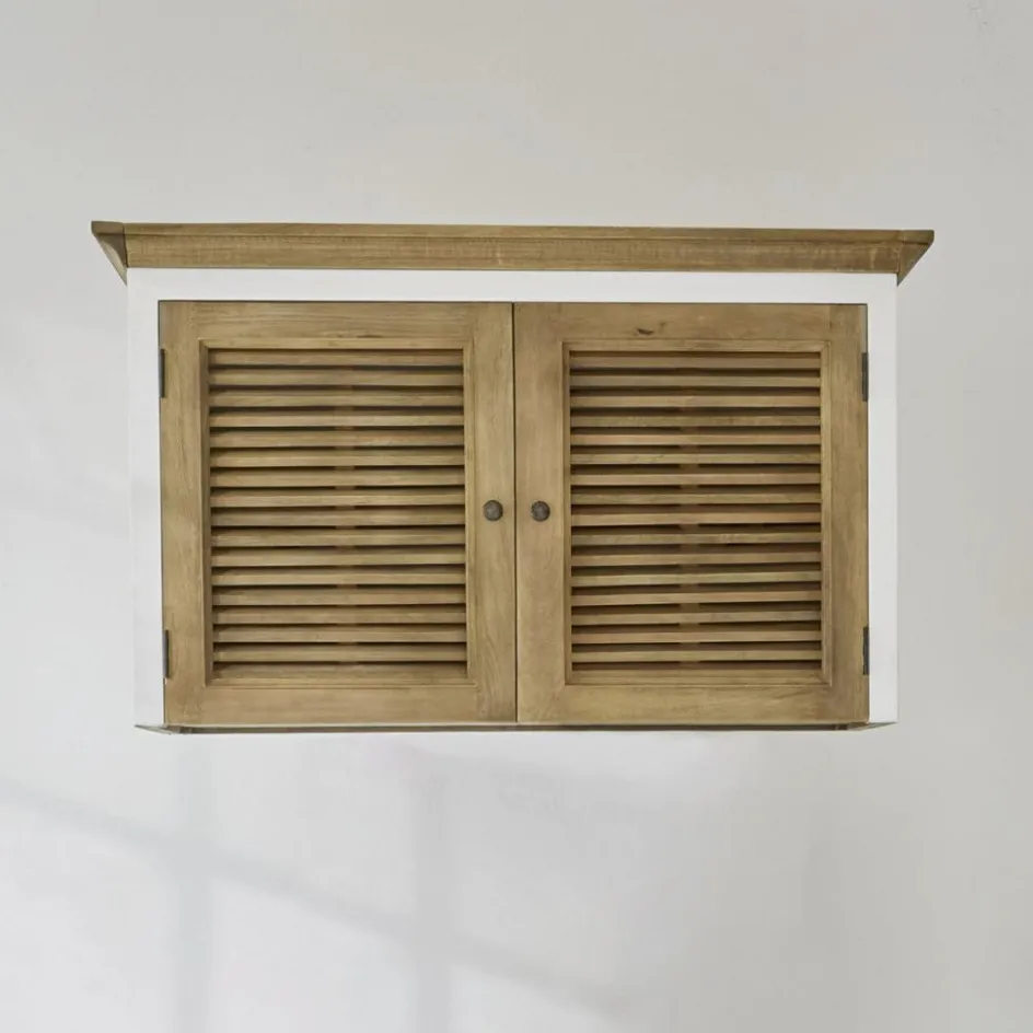 Elegante Ergänzung: Mit diesem doppelten Aufsatz erweitern Sie nicht nur das Fassungsvermögen der Schränke (19350 und 19351) des modularen Schranksystems. Die zweitürige Erweiterung sorgt zudem durch das aparte Würfeldesign für eine noch attraktivere Optik. Wie die Schränke ist auch der Aufsatz in hochwertiger Handarbeit aus robustem und pflegeleichtem Mangoholz gefertigt. Da die Kranzleisten und die Sockelleisten des Systems bei allen Komponenten abnehmbar sind, kann der Aufsatz ganz einfach auf einem der passenden Schränke befestigt werden. Die Leisten lassen die Einzelteile mit dem entsprechenden Schrank harmonisch verschmelzen. So erfreut sich die Kombination einer einheitlichen Optik. Im Inneren ist der Aufsatz durch ein Ablagebrett in zwei Bereiche unterteilt und bietet ein ansehnliches Fassungsvermögen. Damit haben Sie zusätzlichen Stauraum, den Sie insbesondere für Kleidung und Stoffe nutzen können, die Sie eher selten benötigen wie Bettlaken, Saunatücher oder Decken.