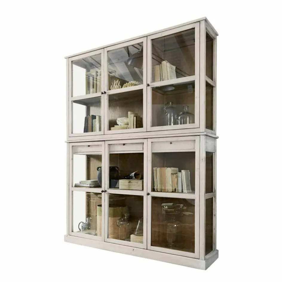 Dieser Vitrinenschrank zeigt sich offen, denn die elegante Glasfläche gewährt Einblicke in das Schrankinnere. Die hübschen Sprossenfenster werden durch Glas komplettiert. Der Schrank ist ein geradliniges Upcycling-Möbelstück und aus wiederaufbereitetem Tannenholz. Dieses ist naturbelassen, so kommt die Schönheit des Holzes unverfäscht zur Geltung. Mit sechs Türen und vier Einlegeböden verfügt er über viel Platz. Neben der großzügigen Staufläche begeistert der Vitrinenschrank als Showbühne für Ihre Bücher, Weingläser, Porzellan oder Wohnaccessoires. Und der ganz große Auftritt ist ihnen damit garantiert sicher. Praktisch: Durch die geschlossene Bauweise hat der Staub keine Chance. Im Schrankinneren sind Ihre Lieblingsstücke gut verwahrt und Sie haben trotzdem alles im Blick.