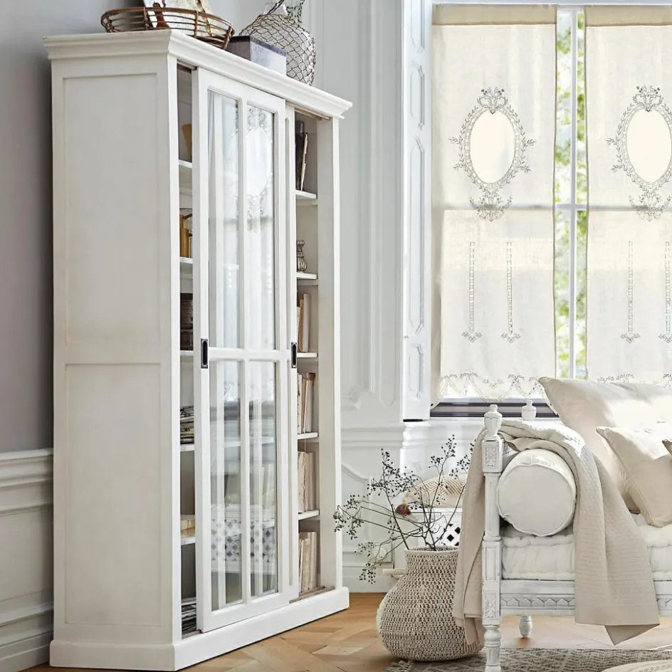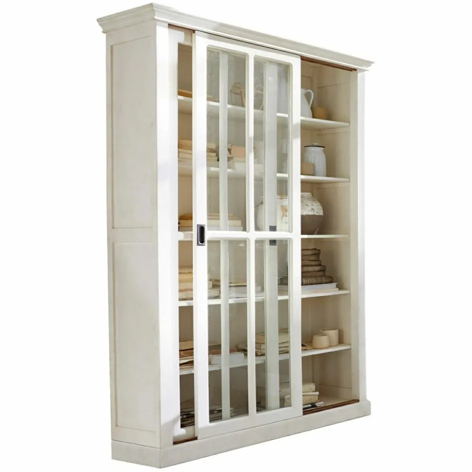 Ein Schatz für viele Räume: Dank seines klassisch schönen Designs fügt sich dieser edle Schrank in jedes Wohnambiente ein. Er ist hochwertig aus Mangoholz und Glas gefertigt. Die eleganten Schiebetüren mit eingelassenen Griffen und dekorativen Sprossenfenstern geben gerne das Innerste dieses Schmuckstücks preis. Egal ob Bücher, Deko-Objekte oder andere Juwelen, die Sie gerne zeigen möchten, dieser schöne Schrank präsentiert Ihre Lieblinge perfekt. Er passt zum Beispiel zum romantischen Landhausstil ebenso wie zu einem Vintage-Ensemble, zu einem Raum im Boho-Chic oder zu einem klaren, klassischen Design. Wegen seines zeitlosen Looks findet er natürlich auch in vielen anderen Einrichtungsstilen und unterschiedlichen Räumen immer den rechten Platz.