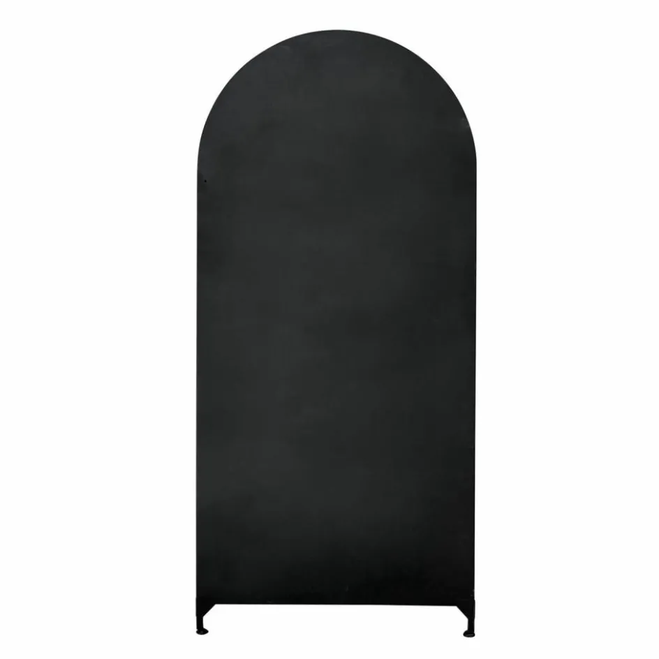 Was von weitem wie ein klassischer Vitrinenschrank aussieht, entpuppt sich bei näherem Hinschauen als ein Möbelstück, das eigentlich mit nichts zu vergleichen ist. Ein Detail erinnert an klassisches Landhaus, mit einem anderen versprüht er Vintage-Flair – kurz: eine spannende Mixtur verschiedener Stilrichtungen und Epochen, die dem Schrank Unverwechselbarkeit garantieren. Der Korpus besteht komplett aus schwarzem Eisen und sorgt für die souveräne Präsenz im Raum, während die beiden Glastüren mit den zierlichen Kiefernholzsprossen die Strenge mildern und ihm zugleich optische Leichtigkeit verleihen. Auch die gerundete Form und die geringe Tiefe tragen dazu bei, dass der Schrank trotz seiner stattlichen Höhe von knapp 190 cm den Raum nicht dominiert, sondern sich harmonisch ins Ensemble der anderen Möbel einfügt. Bücher, Porzellan oder geliebte Sammlerstücke werden auf den stabilen, schwarz lackierten Einlegeböden hervorragend zur Geltung kommen.