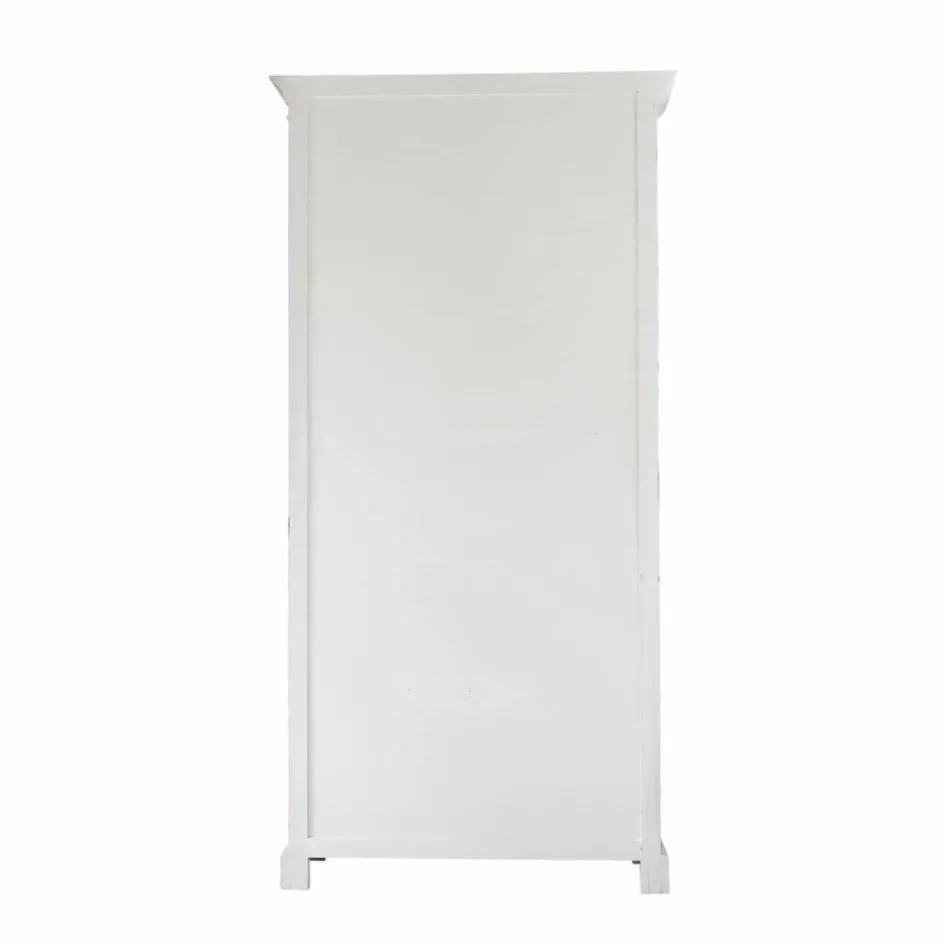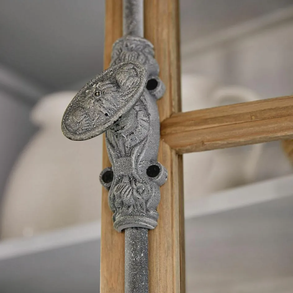 Dieser luxuriöse, große Schrank ist wirklich ein Traum im Shabby-Chic. Er besteht aus nachhaltig wiederaufbereitetem Tannenholz in Kombination mit Pappelholz mit gekonntem Antik-Finish und schöner Patina. Reizvolle Farbkontraste durch abwechselnd naturbelassenen und lackierten Stellen sorgen für eine interessante und doch harmonische Optik. Der naturbelassene Türrahmen sowie der eiserne Schrankgriff fügen sich hier perfekt ein. Der Griff ist reichlich verziert und ebenfalls mit einem Antik-Finish geschmückt. Dieser wunderschöne, edle Schrank schafft spielend leicht Ordnung und zeigt durch die Glaseinsätze doch all Ihre Lieblingsstücke, ob hübsche Bettwäsche, Geschirr, Dekoratives, Bücher oder andere Schätze. Vier Einlegeböden bieten hierfür viel Stauraum. Ob im Wohnzimmer, dem Home Office oder im Esszimmer platziert, dies ist wirklich ein Lieblingsstück. An diesem klassischen und stabilen Schrank haben Sie lange Jahre viel Freude, und er adelt jedes Zuhause.