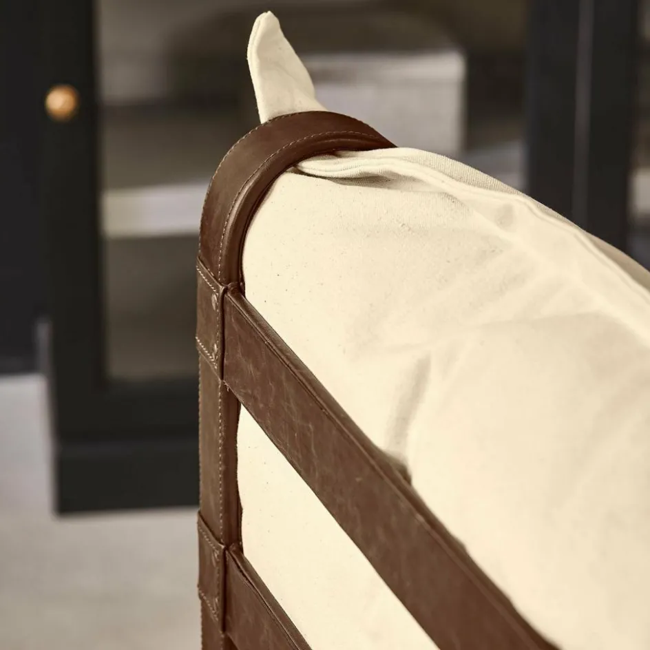 Erleben Sie eine neue Dimension des Komforts mit diesem außergewöhnlichen Sessel. Das markante Gestell aus Eisen, umhüllt von glattem Echtleder, verleiht dem Möbelstück eine zeitlose Ausstrahlung. Die Baumwollstoffbezüge fühlen sich angenehm auf der Haut an und fügen eine warme Note hinzu. Die großzügige Polsterung des Sitzkissens verspricht ein Sitzerlebnis der Extraklasse, während die breite und tiefe Sitzfläche Ihnen genügend Raum bietet, um sich zurückzulehnen und zu entspannen. Dieser Sessel ist nicht nur ein Blickfang in jedem Raum, sondern auch ein Hort der Gemütlichkeit, der zum Verweilen einlädt.