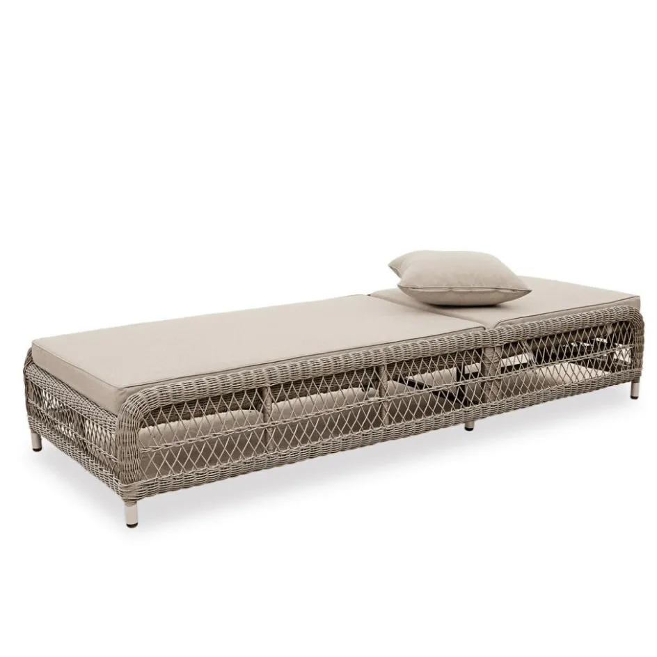 Was für ein herrliches Gefühl, sich an einem schönen Sommertag auf seiner Liege im Garten auszustrecken, endlich mal wieder in ein Buch zu gucken oder eine Zeitschrift durchzublättern oder auch nur den Schönwetterwolken bei ihrem Flug über den Himmel zugucken zu können. Das sind kostbare Stunden, die den inneren Energiespeicher aufladen, so dass man sich wieder gestärkt dem Alltag widmen kann. Aber zunächst bleiben Sie noch ein bisschen liegen und fühlen, wie angenehm sich das weiche Liegepolster anfühlt und wie das kleine Dekokissen den Nacken stützt. Gerne hätten Sie das Kopfteil ein bisschen höher? Kein Problem. Bei dieser Liege haben Sie die Wahl zwischen 5 verschiedenen Höhen – da ist bestimmt die optimale für jede Situation dabei. Doch diese Liege bietet nicht nur einzigartigen Entspannungsgenuss, sie ist auch ein Schmuckstück in Ihrem Outdoor-Bereich. Das Geflecht sieht aus wie echtes Rattan, ist aber modernes Polyrattan, das deutlich witterungsfester ist als die echte Naturfaser. Wie bei Naturrattan werden die Kunststofffasern sorgsam von Hand geflochten, hier aber um ein ebenfalls wetterfestes Alugestell, das die Liege extrem belastbar macht, ohne dabei selbst ein Schwergewicht zu sein. Die Kissen haben einen Bezug aus schmutzabweisendem Polyester, können bei Bedarf aber mit dem Reißverschluss abgezogen und bei 30°C gewaschen werden. Für einen optimalen Schutz sorgt auch eine separat erhältliche Husse. Sie finden diese unter der Artikelnummer 18189.