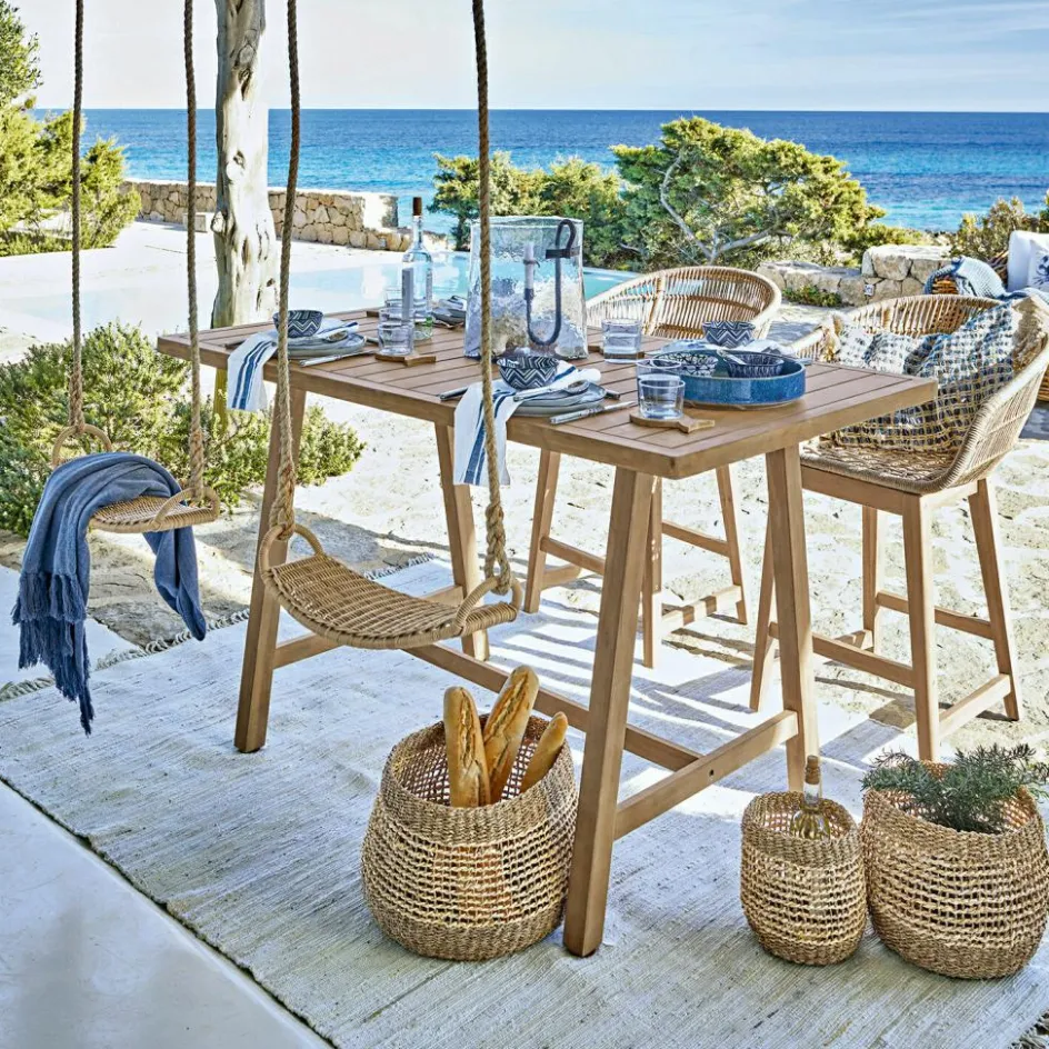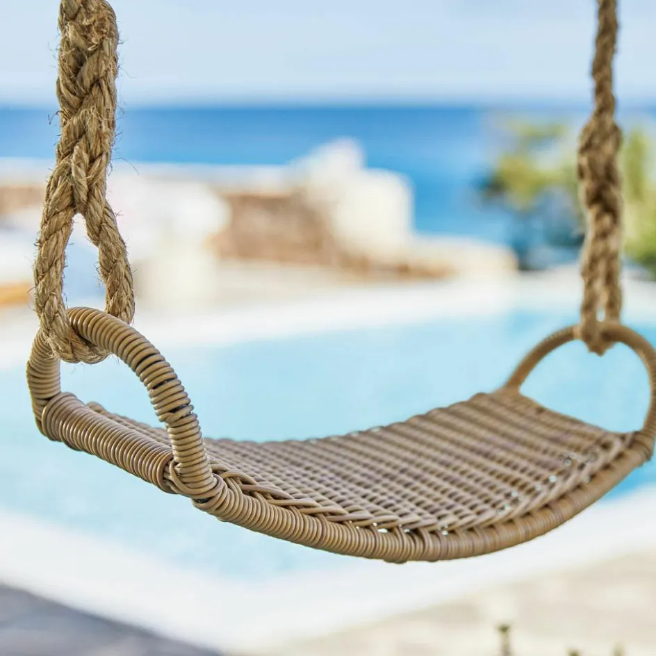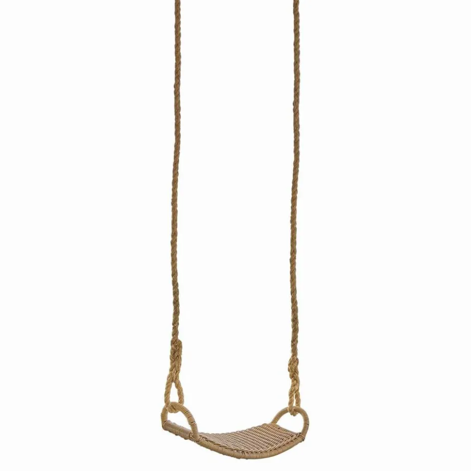 Wollen wir nicht manchmal alle wieder Kind sein und die Seele baumeln lassen? Diese wunderhübsche Schaukel in natürlicher Optik erinnert an glückliche Tage im Garten. Einfach losschaukeln und den Alltag vergessen – das ist pure Lebensfreude, und dieses tolle Gefühl können Sie sich mit dieser attraktiven Schaukel ganz einfach nach Hause holen, ob für sich selbst oder die Kleinen. Das schicke Design besteht aus wetterfestem Polyrattan mit einer Aufhängung aus Jute und Eisen. An einem Baum im Garten oder an stabiler Stelle auch innen befestigt holen Sie sich hiermit verspielten Charme in Ihr Heim. Erleben Sie selbst, wie beim Schaukeln kindliche Freude aufkommt – so leicht kann das Leben sein! Diese hübsche Schaukel dürfte auch bei Ihren Gästen zum Star werden.
