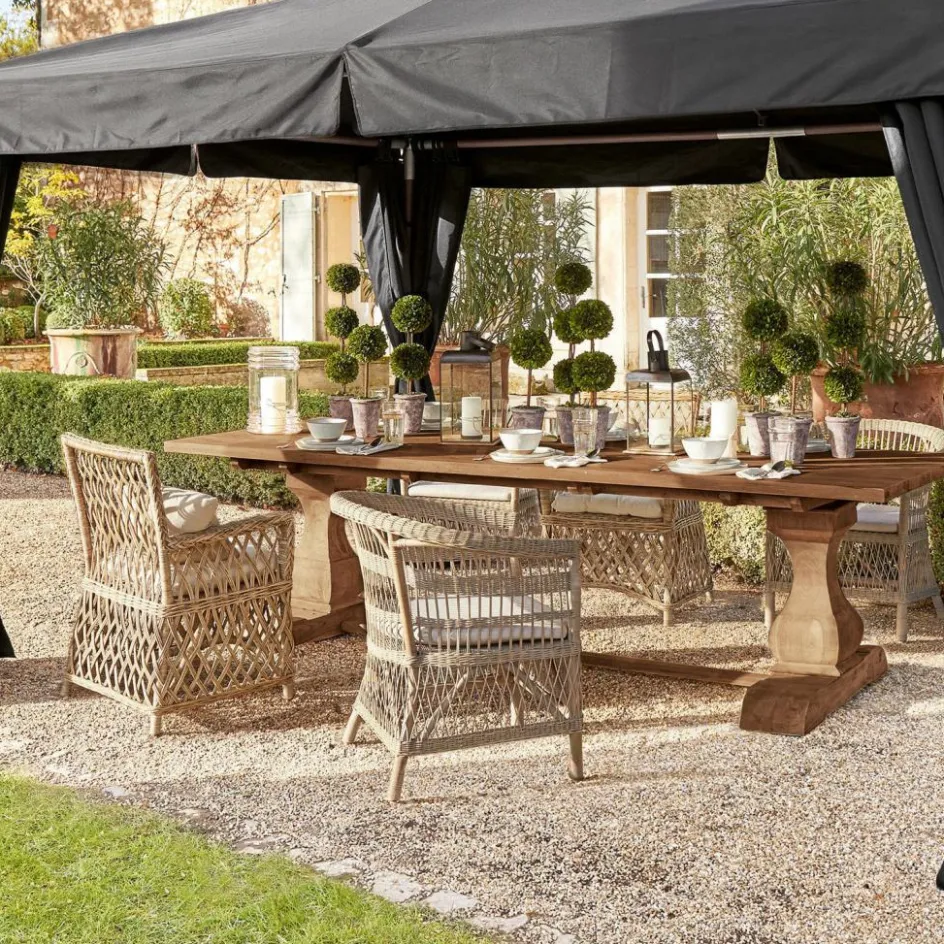 Zugegeben: Rattanmöbel sind unschlagbar gemütlich und strahlen eine anziehende Wärme aus. Doch müssen sie hochwertig gefertigt und natürlich im Material sein. Denn wenn es um Ihren Wohntraum geht, sollten Sie sich nicht mit weniger zufrieden geben. Dieser Sessel aus echtem Rattan greift praktisch alle Vorteile des begehrten Sitzmöbels auf und präsentiert sich dennoch besonders. Sein Korpus aus stabilem Eisen ist mit einem wunderschönen Rautendesign bezogen, das kunstvoll von Hand mit den einzelnen Flechtsträngen verflochten wurde. Eine gelungene Mischung aus Eleganz und Leichtigkeit prägt seinen Auftritt. Erfreulich ist auch der Sitzkomfort: Das fest fixierte Polsterkissen ist mit einem strapazierfähigen Baumwollgewebe bezogen. Auch die Armlehnen sowie die hohe Rückenlehne tragen zur entspannten Bequemlichkeit bei. Ob im Innen- oder Außenbereich – der Korbsessel ist für jede Situation zu haben und wird im Esszimmer oder auf der Terrasse schnell zur ästhetisch wertvollen Sitzgelegenheit. Auch in einem Pavillon oder einer romantischen Gartenlaube kommt der Armsessel wunderbar zur Geltung.