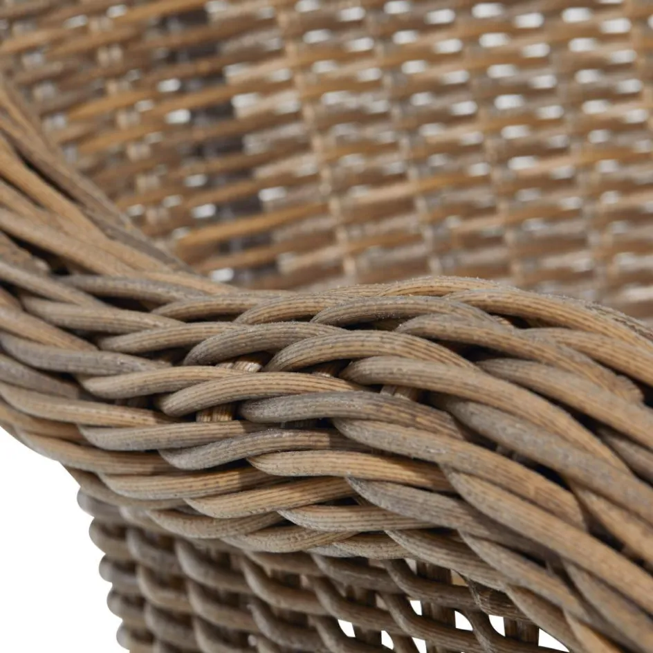 Wer liebt es nicht – das entspannte Lebensgefühl des mediterranen Raumes! Und wo lässt sich das besser genießen als in einem Sessel wie diesem hier? Zumindest während der vielen Sommertage und Abende, die man nicht unter südlicher Sonne verbringen kann. Da aber auch die Sommer nördlich der Alpen mediterranen Charakter annehmen, wird das Urlaubsfeeling auf Ihrer Terrasse perfekt werden. Ganz gleich, ob Sie während der Gartenarbeit mal solo eine kurze Pause in diesem Sessel einlegen oder sich die Freunde um den Tisch versammeln, weil Sie zum traditionellen Barbecue eingeladen haben – alle werden das außergewöhnliche Sitzerlebnis in diesem Sessel zu schätzen wissen. Das hohe Rückenteil lädt zum entspannten Anlehnen ein, während die Arme auf den geschwungenen Armlehnen ruhen – so lässt es sich gemütlich plaudern, bis plötzlich die Sterne am Himmel leuchten. Doch auch, wenn Sie mal keine Zeit zum Platz nehmen haben, wird das elegante Design eine Freude fürs Auge sein. Das dekorative Geflecht sieht aus wie echtes Rattan, ist aber ein modernes Kunststoffgeflecht mit hervorragenden Outdoor-Eigenschaften. Die elastischen Kunststofffasern, die wie Naturrattan in aufwändiger Handarbeit geflochten werden, sind absolut nässe- und wetterbeständig, so dass Sie den Sessel unbesorgt den ganzen Sommer draußen im Freien stehen lassen können.