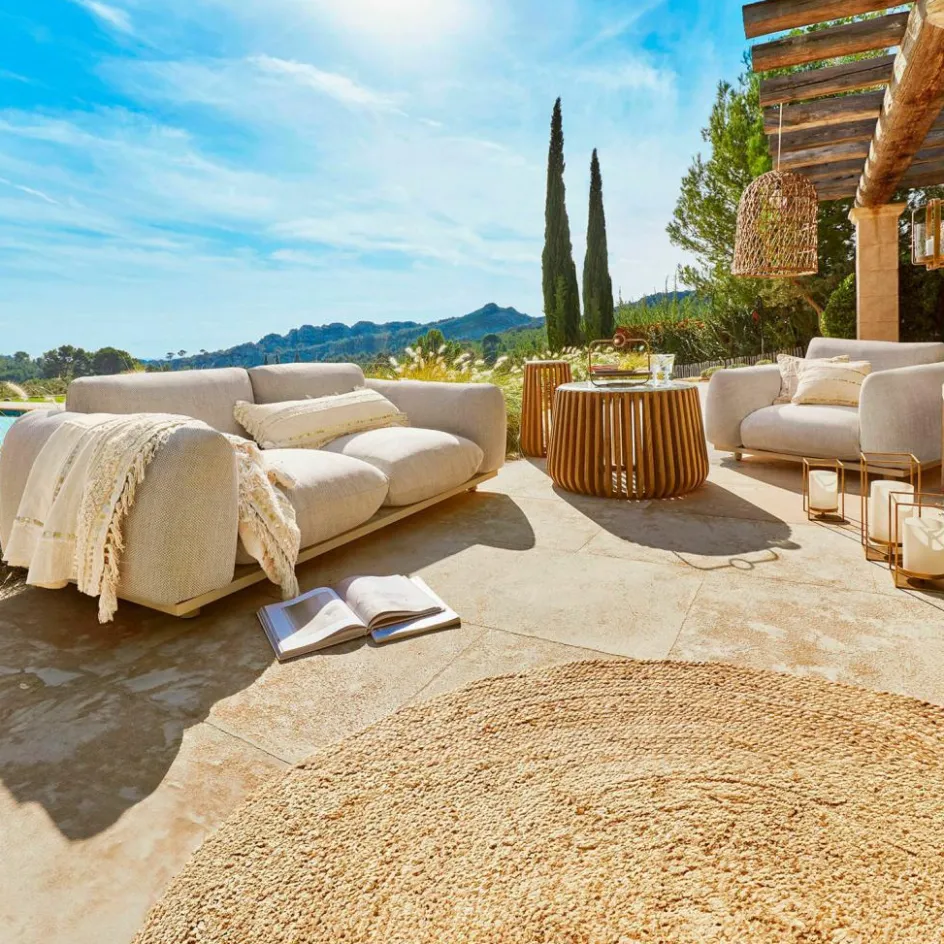 Ein Outdoor-Sessel, der keine Kompromisse bei Komfort und Funktionalität macht. Seine großzügigen Polster und die tief angelegte Sitzfläche schaffen eine gemütliche Rückzugsmöglichkeit im Freien. Der weiche, leicht wasserabweisende Olefinfaser-Bezug verleiht ihm nicht nur Beständigkeit gegen die Elemente, sondern fühlt sich auch angenehm an. Die sanft abgerundeten Arm- und Rückenlehnen sorgen für zusätzliche Geborgenheit.