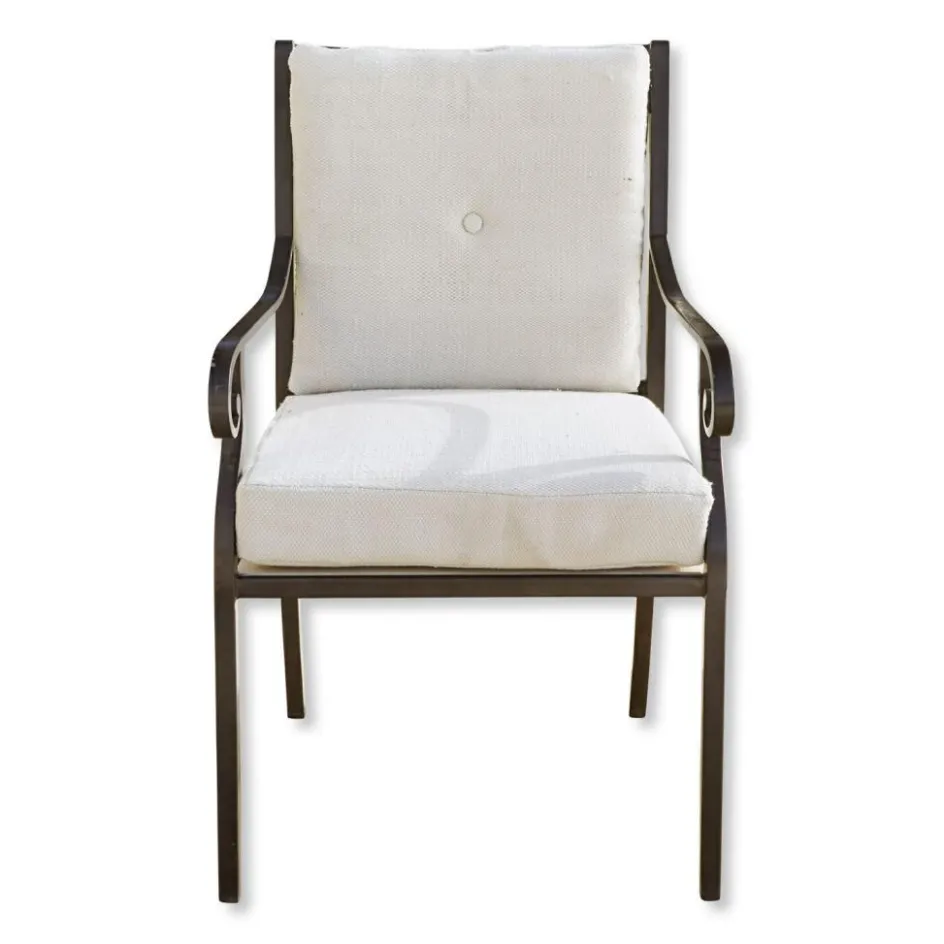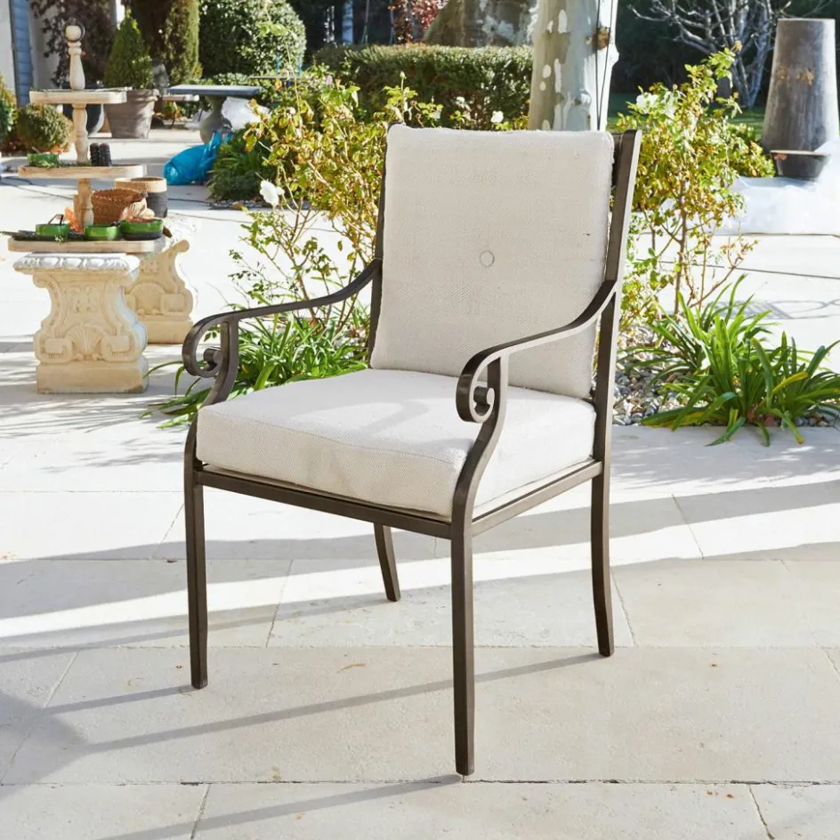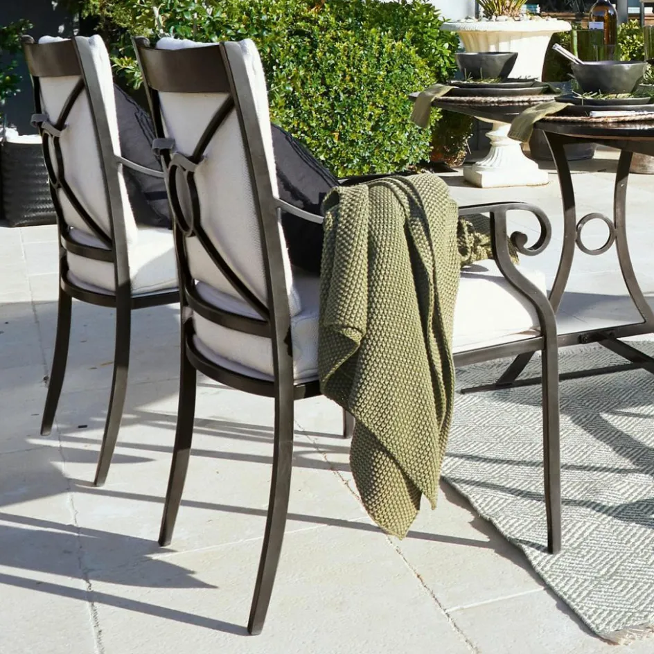 Wie schön das Schlichte ist, zeigt dieser makellose Stuhl im französischen Stil. Im puristischen Design vereint sich eine formschöne, klare Linienführung mit zeitloser Eleganz. Der Verzicht auf optisch überbordende Reize eröffnet nuancierten Feinheiten neue Möglichkeiten der visuellen Entfaltung. So kommen etwa die geschwungenen Armlehnen oder die beiden Kissen mit edlem Keder in ihrer zierlichen Schönheit ganz zur Geltung. Aber auch die grazilen Beine und das gesamte Gestell aus Aluminiumguss machen diesen Stuhl zu einem außergewöhnlichen Schmuckstück, das jedes Wohnambiente aufwertet. Die Bezüge sind aus wasserabweisendem Polyester mit Abperleffekt. Ob in der Leseecke neben einer stilvollen Lampe oder im Ensemble um einen Tisch für ein Treffen im Kreis von Freunden oder auch Geschäftspartnern – mit diesem edlen Objekt beweisen Sie Stil. Und das nicht nur im Innenbereich. Auch auf Terrasse oder Balkon sitzen Sie bequem und stilvoll.