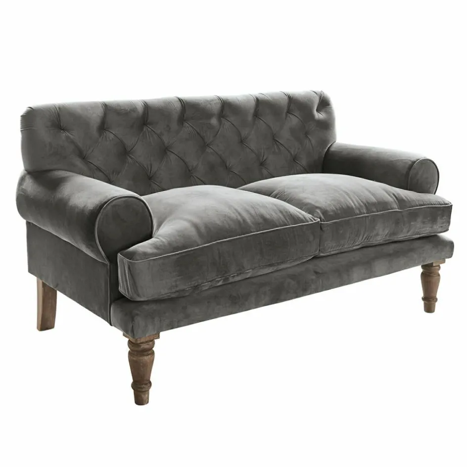 Manche Möbelstücke sind etwas ganz Besonderes. Das sieht man auf dem ersten Blick – und manchmal fühlt man es sogar. Das kunstvolle Sofa mit der charakteristischen Chesterfield Steppung und wunderbar weichen Samthaptik gehört zweifellos in die Reihe der außergewöhnlichen Schmuckstücke. Der aparte Blickfang versprüht durch seine elegante Optik mit seinen klaren Linien und sichtbar bequemen Polstern das Gefühl unbeschwerten Komforts. Es bezaubert durch seine klassisch schöne Form und bietet zwei bis drei Personen eine wunderbar komfortable Sitzmöglichkeit. In Ihrem Wohn-, Arbeits- und Lesezimmer oder im Gesellschaftsraum macht es eine perfekte Figur. Das Gestell besteht aus Mangoholz. So sind hohe Beständigkeit und leichte Pflege gesichert. Zudem sind die Sitzpolsterbezüge abnehmbar. Ob Lektüre von Arthur Conan Doyle oder Baudelaire im Schein der Leselampe oder lachen und plaudern im Kreis der Freunde und Familie – Sie werden viele schöne Stunden mit diesem eleganten Möbelstück haben.