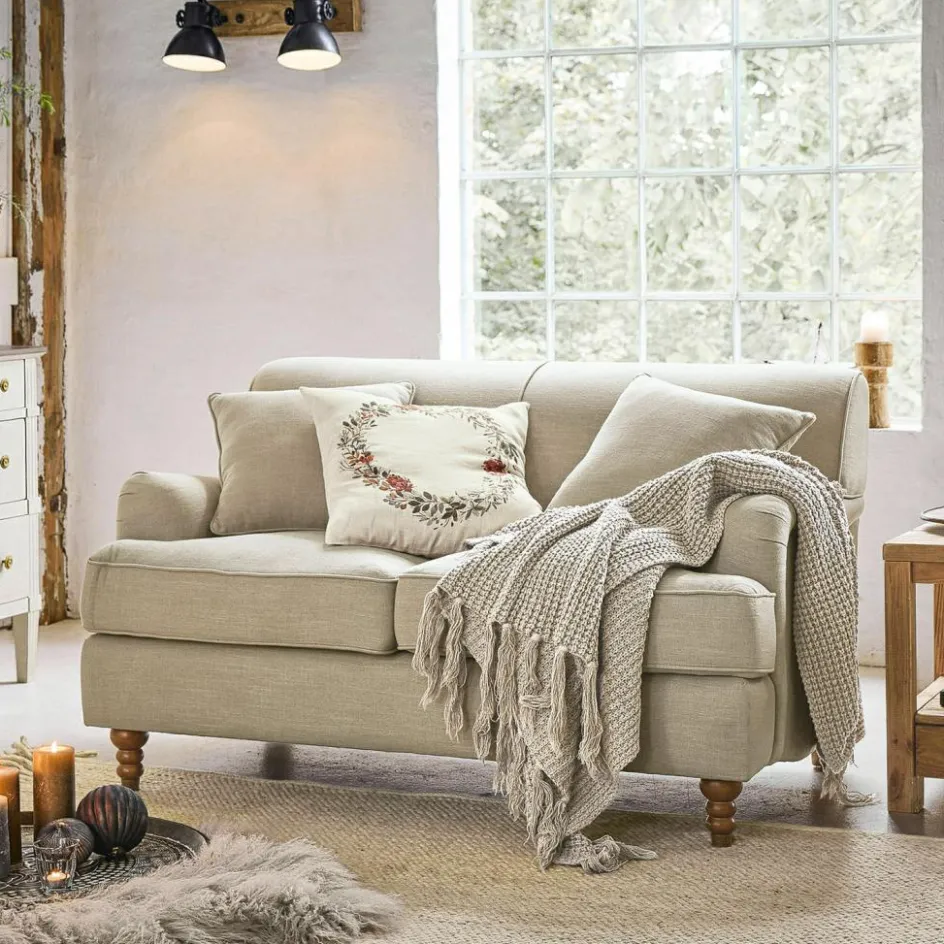 Couch, Kanapee, Diwan, Sofa – es gibt viele Namen für dieses Möbelstück, das sich seit Jahrhunderten großer Beliebtheit erfreut und sich im Laufe der Zeit in den verschiedensten Stilrichtungen präsentierte. Für alle, die ebenso viel Wert auf modernes Design wie auf erstklassigen Sitzkomfort legen, wurde dieses Sofa-Modell entworfen. Die dezente Farbgebung des hochwertigen Leinenbezuges harmoniert vollendet mit der geradlinig schlichten Linienführung, die nur von bequemen Sitzkissen und zwei Zierkissen charmant aufgelockert wird, während die kunstvoll gedrechselten Füße eine liebevolle Reminiszenz an die historischen Vorbilder sind. Kurz: Ein Sofa, das seine Verwandtschaft zu den berühmten Design-Klassikern der italienischen Schule nicht verleugnen kann, für die Optik, Funktionalität und traditionelle, handwerkliche Fertigung immer Hand in Hand gehen. Deshalb wird Sie dieses Sofa nicht nur mit elegantem Design, sondern dank der weichen Schaumstoffpolsterung auch mit luxuriöser Bequemlichkeit verwöhnen. Ganz gleich, ob Sie gerne aufrecht sitzen, sich lieber bequem hineinlümmeln und die Füße hochlegen oder gemütliche Kuschelstunden zu zweit genießen. Mit seiner gemütlichen Sitzfläche macht sich der 2-Sitzer überall nützlich! Für die Alltagstauglichkeit sorgt der Bezugsstoff aus Leinen, der solide Rahmen ist aus Kiefernholz. Die Kissen sind mit einem Reißverschluss ausgestattet, so dass Sie bei Bedarf den Bezug abnehmen können. Alternativ ist dieses Leinensofa auch als 3-Sitzer erhältlich. Und in anderen Farben erhalten Sie das Sofa zudem auch mit einem Samtbezug.