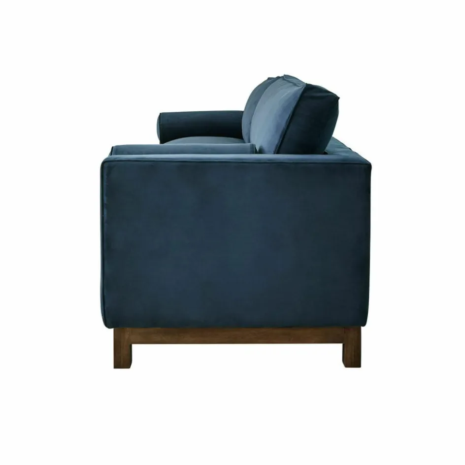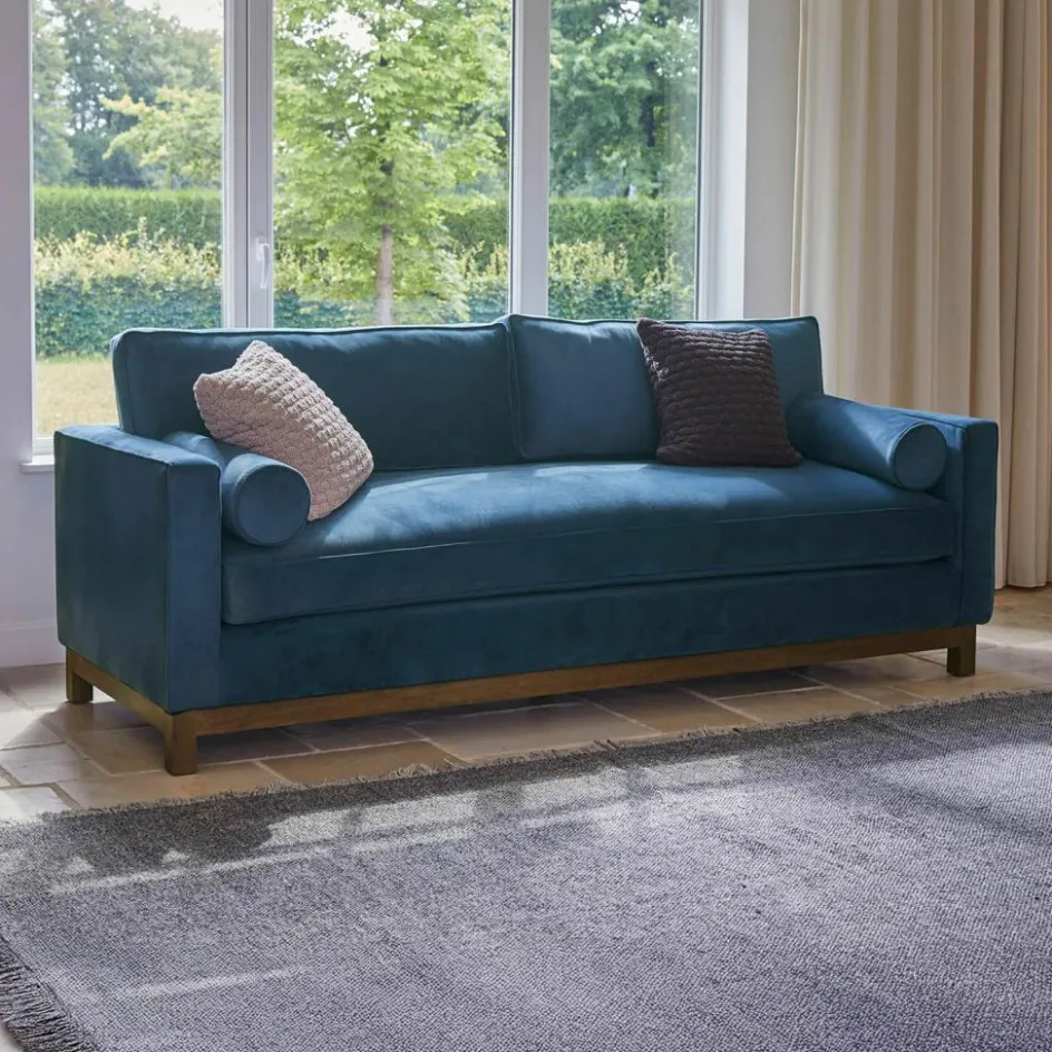 Dieses Sofa bringt Ruhe in den Raum – nicht durch Zurückhaltung, sondern durch seine entschlossene Formensprache. Geradlinige Armlehnen, ein tief angesetzter Korpus und die klar definierte Sitzfläche verleihen ihm eine architektonische Ausstrahlung. Zwei markante Rollenkissen setzen nicht nur einen formalen Akzent, sondern laden auch zum Anlehnen, Ablegen oder Entspannen ein. Der Bezug aus weichem Samt verleiht dem Design eine wohnliche Note – mit feiner Haptik und dezentem Glanz. Die abnehmbaren Kissenrollen-Bezüge runden das durchdachte Design funktional ab. Ein Möbelstück, das durch seine Klarheit überzeugt – und durch seine behutsame Raffinesse.