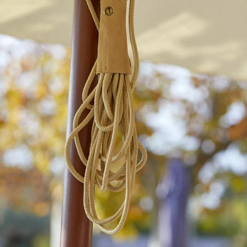 Der quadratische Sonnenschirm wird auch höchsten Ansprüchen gerecht: Das Gestänge ist aus Eukalyptusholz gearbeitet, die Schirmstreben stecken in stabilen Metallhülsen. Bespannung aus robustem Olefin hält auch mal einem Regenschauer Stand. Bequemes Öffnen und Schließen durch den doppelten Flaschenzug, ist er aufgespannt verschwindet das Seil in einem kleinen Ledermäppchen. Windsicher durch die Sturmhaube. Einen passenden Schirmständer finden Sie separat hier bei uns im Shop.