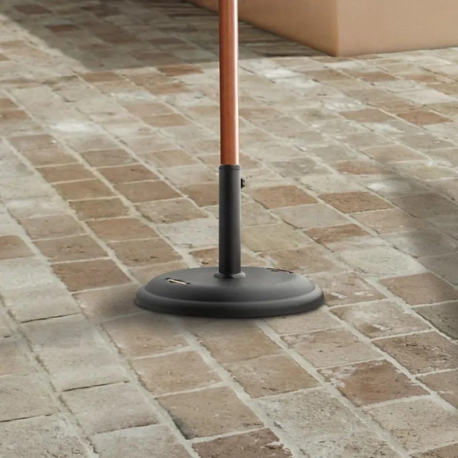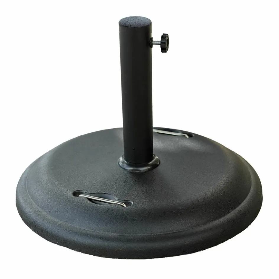 Der schwere Betonschirmständer lässt sich durch die beiden eingelassenen Metallgriffe problemlos transportieren – immer der Sonne nach! Besonders praktisch: Die Metallhülse mit verschiedenen Einsätzen und Fixierschraube, die sich unterschiedlichen Mastdurchmessern anpasst und die Schirme windsicher an Ort und Stelle hält. Am besten geeignet für 2×2 m-Schirme.