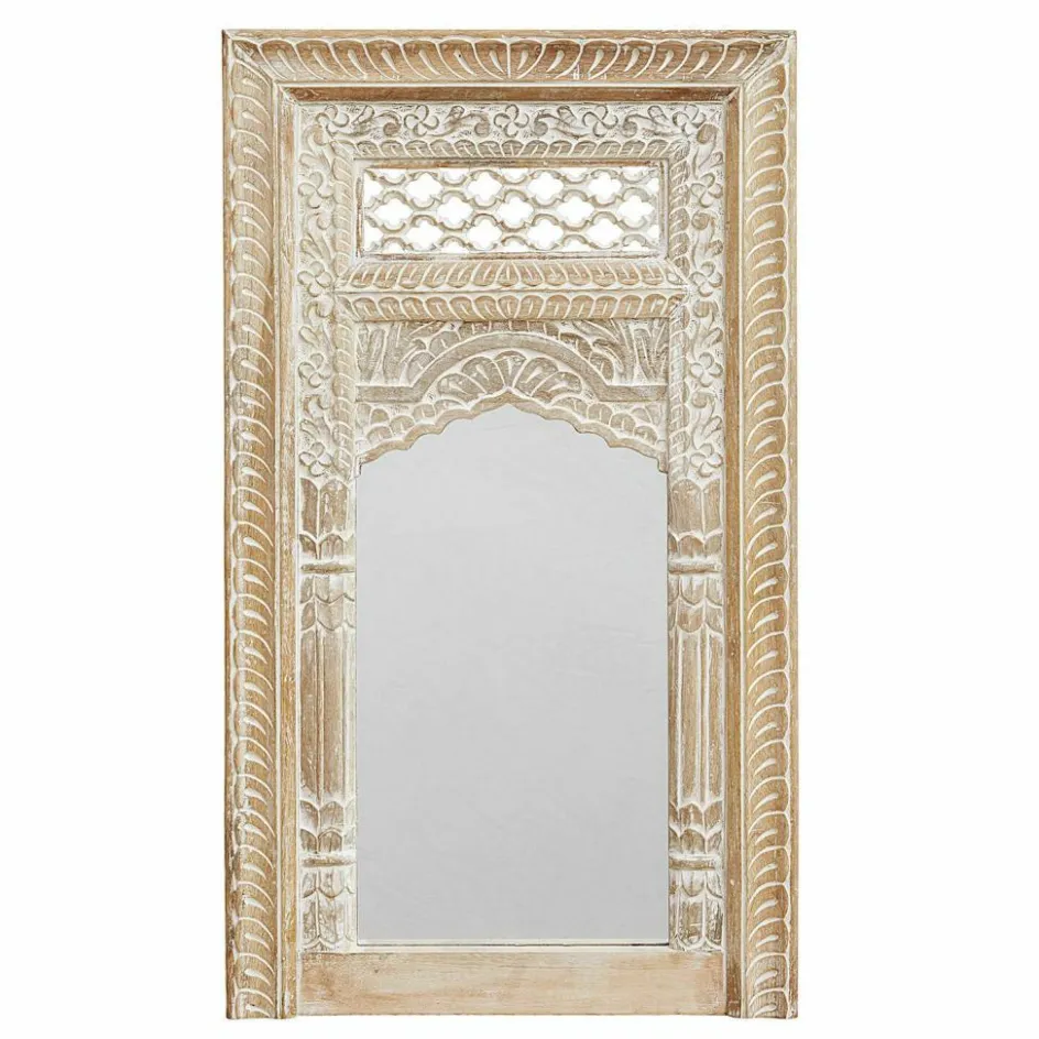 Ein wahres Schmuckstück für jeden Raum: Dieser Spiegel vereint kunstvolle Handwerkskunst mit einer dezenten, weiß gekalkten Oberfläche. Die detaillierten Schnitzereien im orientalischen Stil verleihen ihm eine besondere Ausstrahlung und verwandeln ihn in ein dekoratives Highlight an jeder Wand. Die filigranen Muster schaffen ein harmonisches Zusammenspiel aus Struktur und Form, das nicht nur Räume optisch vergrößert, sondern auch das Ambiente aufwertet. Ob im Flur, Schlafzimmer oder Wohnzimmer – dieser Spiegel bringt exotischen Charme in Ihr Zuhause.