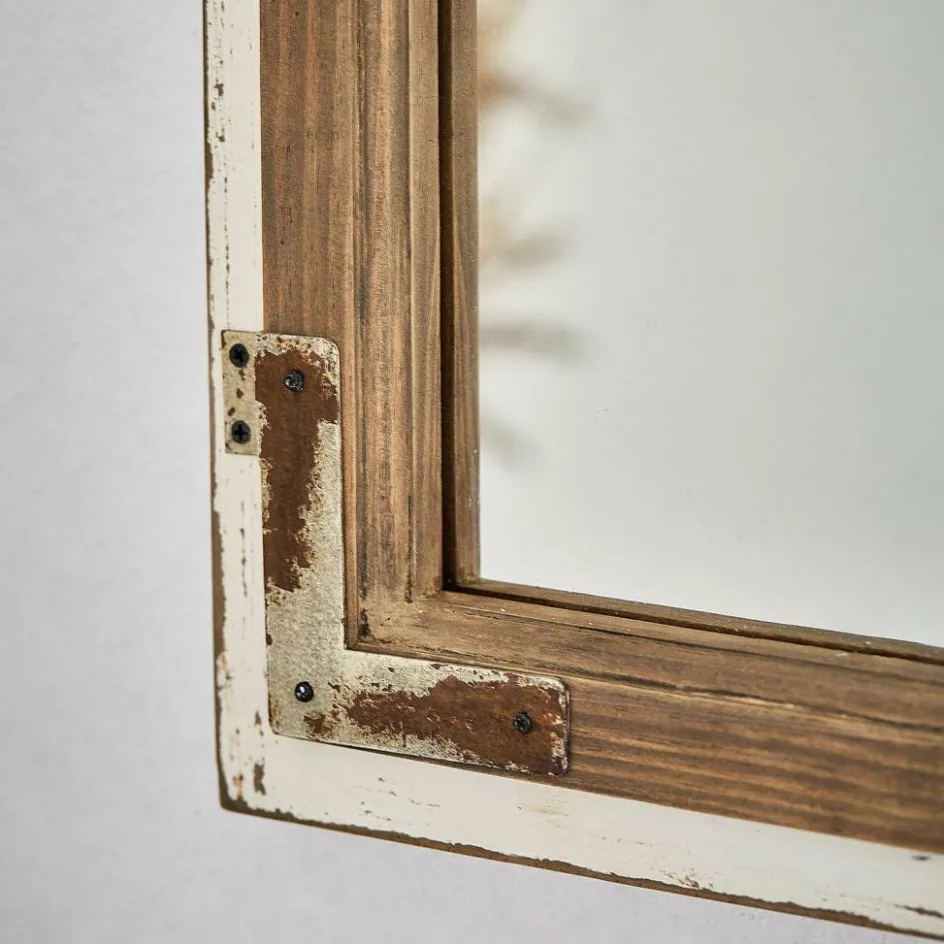 Dieser Spiegel bringt mit seinem einzigartigen Fensterdesign eine besondere Atmosphäre in Ihre vier Wände. Der bogenförmige Abschluss und die feinen Details des Rahmens verleihen ihm eine authentische Anmutung, die an ein antikes Landhausfenster erinnert. Das Antikweiß-Finish mit bewusst gesetzten Gebrauchsspuren sorgt für den charakteristischen Shabby-Chic-Look, der Ihre Einrichtung harmonisch ergänzt. Nicht nur praktisch, sondern auch dekorativ: Der Spiegel reflektiert das Licht und schafft ein luftiges Raumgefühl – ein absolutes Highlight für Flur, Wohnzimmer oder Schlafzimmer.