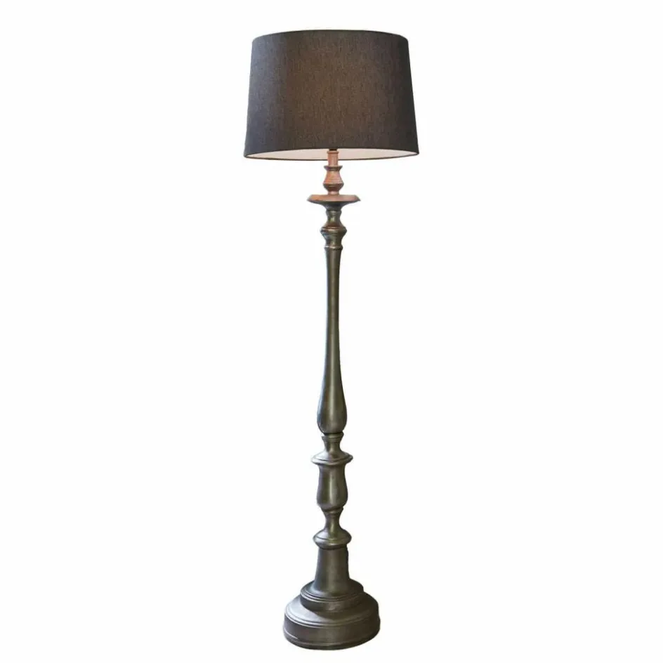 Mit ihrer ausgewogenen Komposition aus massivem Fuß und schlichtem Schirm verströmt diese Stehlampe eine ruhige Eleganz. Der Sockel aus Aluguss beeindruckt mit seiner kunstvoll gedrechselten Silhouette und dem edlen Antiksilber-Finish, das je nach Lichteinfall dezent schimmert. Dazu bildet der zylindrische Baumwollschirm in gedecktem Grau einen stimmigen Kontrast – schlicht, zurückhaltend, aber voller Wirkung. Ob neben dem Sofa, im Schlafzimmer oder in einer gemütlichen Leseecke – diese Lampe steht für Licht mit Stilgefühl und Substanz.