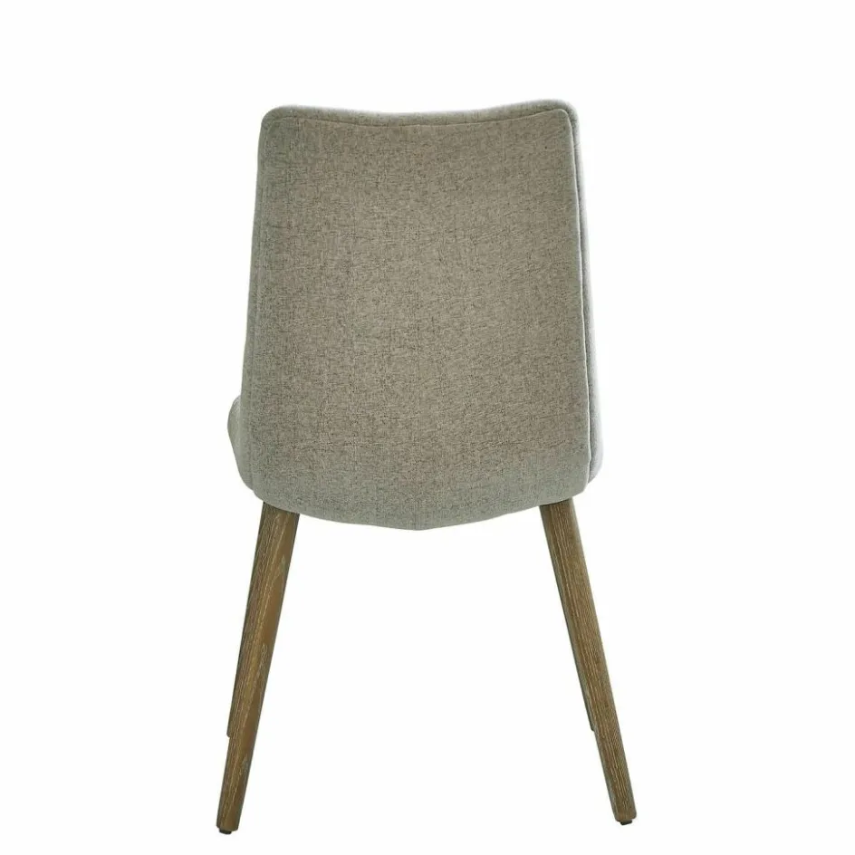 Der Stuhl vereint auf charmante Weise klassische und moderne Designelemente. Der melierte Stoffbezug mit einem Hauch von Leinen verleiht ihm eine angenehme Haptik und sorgt für Sitzkomfort. Die dezent eingesetzte Knopfsteppung im Chesterfield-Stil verleiht ihm ein traditionelles Flair, während die leicht abgeschrägten, stabilen Eschenholzfüße mit einem sanften weißen Finish einen modernen Akzent setzen. Ob im Esszimmer oder im Wohnbereich – dieser Stuhl fügt sich harmonisch in jedes Raumkonzept ein und lädt zum Verweilen ein.