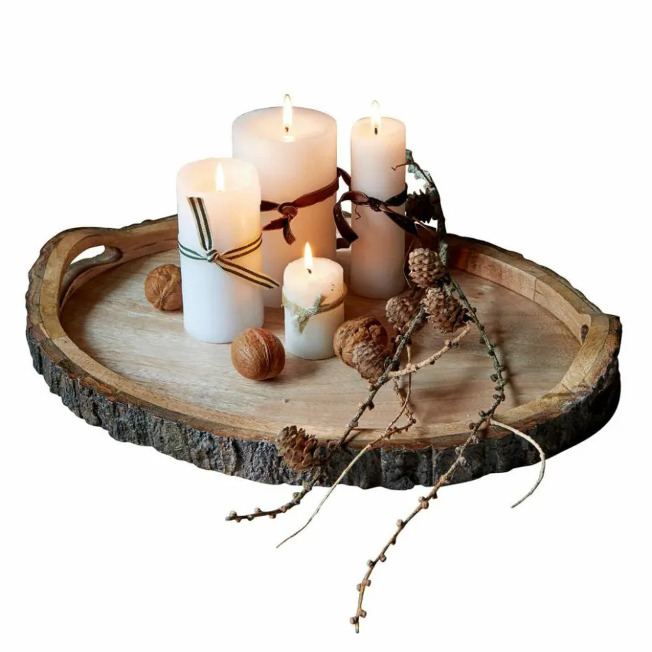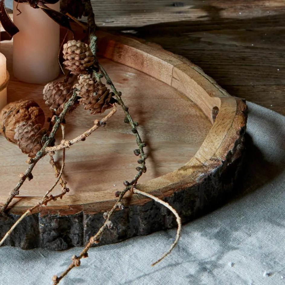 Ein Stück Natur für Ihr Zuhause: Dieses Tablett ist mehr als nur ein praktisches Accessoire – es erzählt von warmen Holztönen, sanften Rundungen und der rauen Schönheit unbehandelter Rinde. Die ovale Form unterstreicht seine organische Ausstrahlung, während die Griffmulden dezent eingearbeitet sind und das Tragen angenehm erleichtern. Als Unterlage für Teetassen, Kerzen oder saisonale Dekoration wirkt es gleichermaßen bodenständig wie besonders – und verleiht Ihrem Ambiente die leise Poesie des Ursprünglichen.