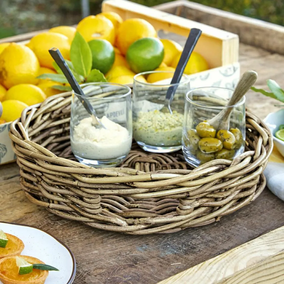 Die Korbflechterei ist eine alte Handwerkskunst, an der die technischen Entwicklungen der Neuzeit nahezu komplett vorbeigegangen sind. Das bedeutet, dass dieses Tablett wie vor Jahrhunderten ganz traditionell von Hand aus Rattan geflochten wurde. Rattan, besser gesagt die Rotang-Palme, wächst in den tropischen Regenwäldern Asiens, wo sie sich mit ihren langen Trieben bis in die Spitzen der Bäume schlängelt. Nach der Ernte der Triebe, bei der die Urwaldbäume übrigens unangetastet bleiben, werden diese über Wochen feucht gelagert, um das Material geschmeidiger und flexibler zu machen. Gleichzeitig erhält die Naturfaser dadurch ihre einzigartige Farbe, ganz ohne den Einsatz von Chemie. Anschließend werden dann Accessoires wie dieses Tablett in einer jahrhundertealten Technik sorgfältig geflochten, die dem Tablett nicht nur die wunderschön gleichmäßige Struktur, sondern auch eine ausgezeichnete Stabilität verleiht. Und weil es sich der Korbmacher nicht hat nehmen lassen, gleich zwei praktische Griffmulden in das Geflecht einzuarbeiten, können Sie das Tablett zum Servieren wie zum Dekorieren einsetzen.