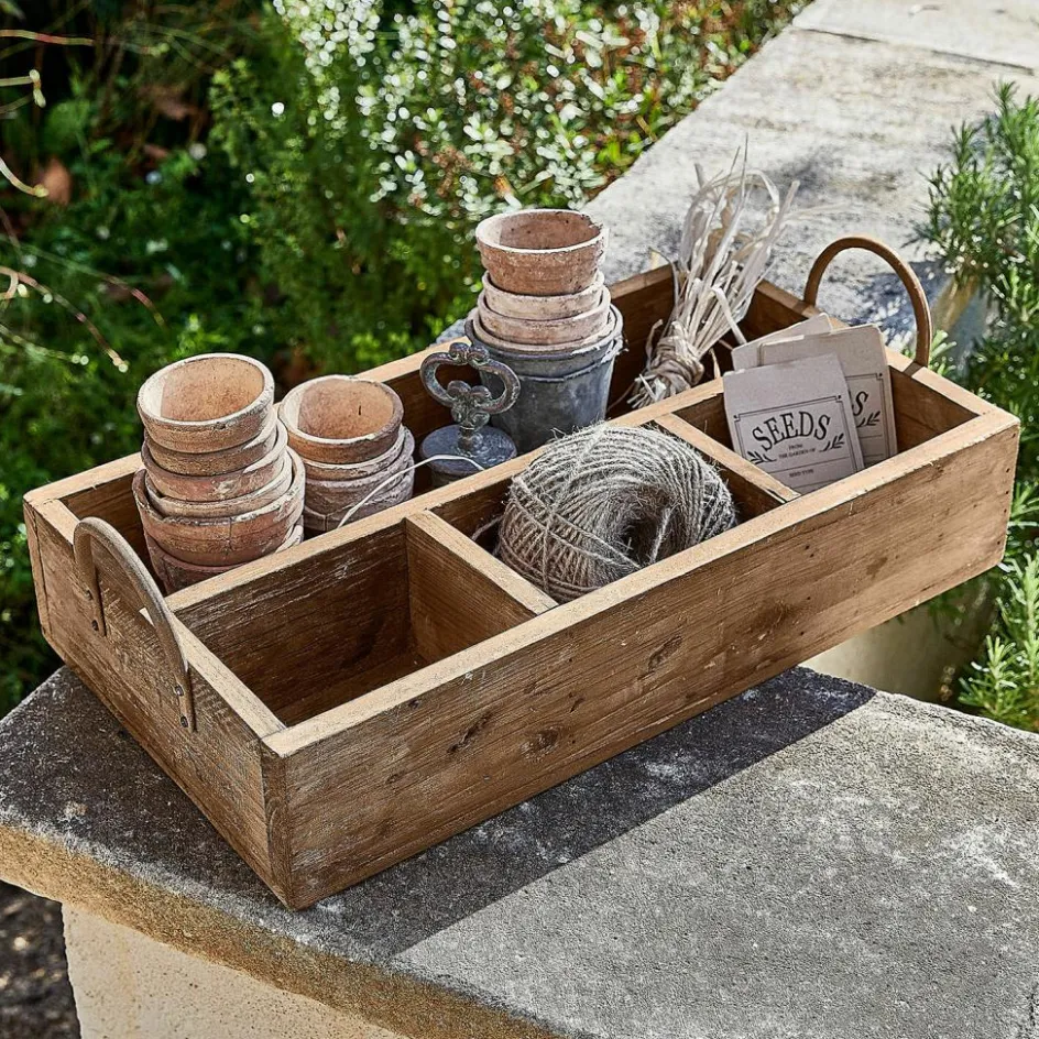 Mit diesem einzigartigen Tablett holen Sie sich ein Stück rustikaler Gemütlichkeit in Ihr Zuhause. Aus wiederaufbereitetem Holz gefertigt, strahlt es eine natürliche Wärme und Authentizität aus, die in keiner modernen Einrichtung fehlen darf. Der charmante „Farmers Market“-Aufdruck und die griffigen Metallgriffe unterstreichen den nostalgischen Charakter und machen es zu einem echten Hingucker. Ob als Ordnungshelfer in der Küche, für Utensilien auf dem Esstisch oder als dekorativer Akzent – dieses Tablett vereint Praktikabilität und ansprechendes Design. Die Fächeraufteilung bietet eine clevere Möglichkeit, kleine Gegenstände stilvoll zu sortieren und jederzeit griffbereit zu haben.