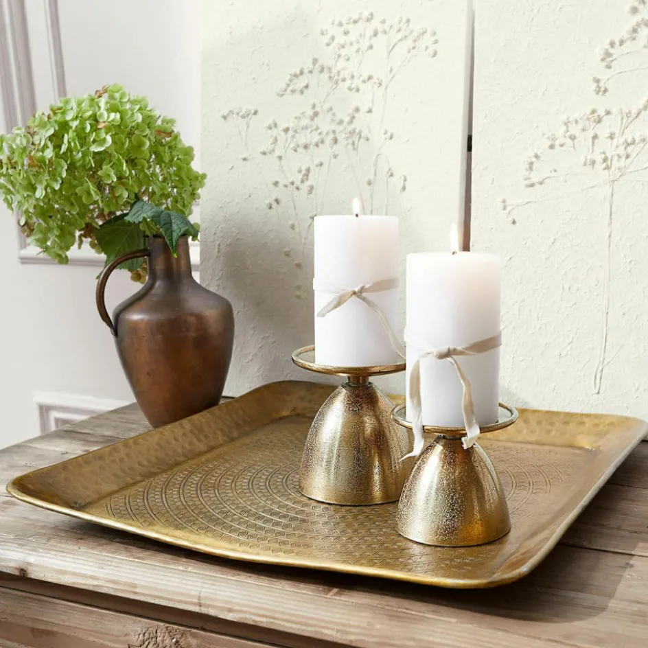 Entdecken Sie die kunstvolle Schönheit dieses Tabletts, das Tradition und Kunsthandwerk auf wunderbare Weise vereint. Hergestellt aus robustem Aluminium und veredelt mit einem Antikmessing-Finish, besticht dieses Tablett durch ein faszinierendes Azteken-Muster, das durch präzises Stanzen und Hämmern zum Leben erweckt wurde. Jeder Kreis, jedes geometrische Element erzählt eine Geschichte von fernen Kulturen und handwerklicher Perfektion. Der solide Eisenrahmen rundet das Design ab und sorgt dafür, dass dieses Tablett nicht nur dekorativ, sondern auch funktional ist. Ob als Serviertablett oder dekoratives Element – dieses Tablett bringt einen Hauch von Mystik und Exotik in Ihr Zuhause.