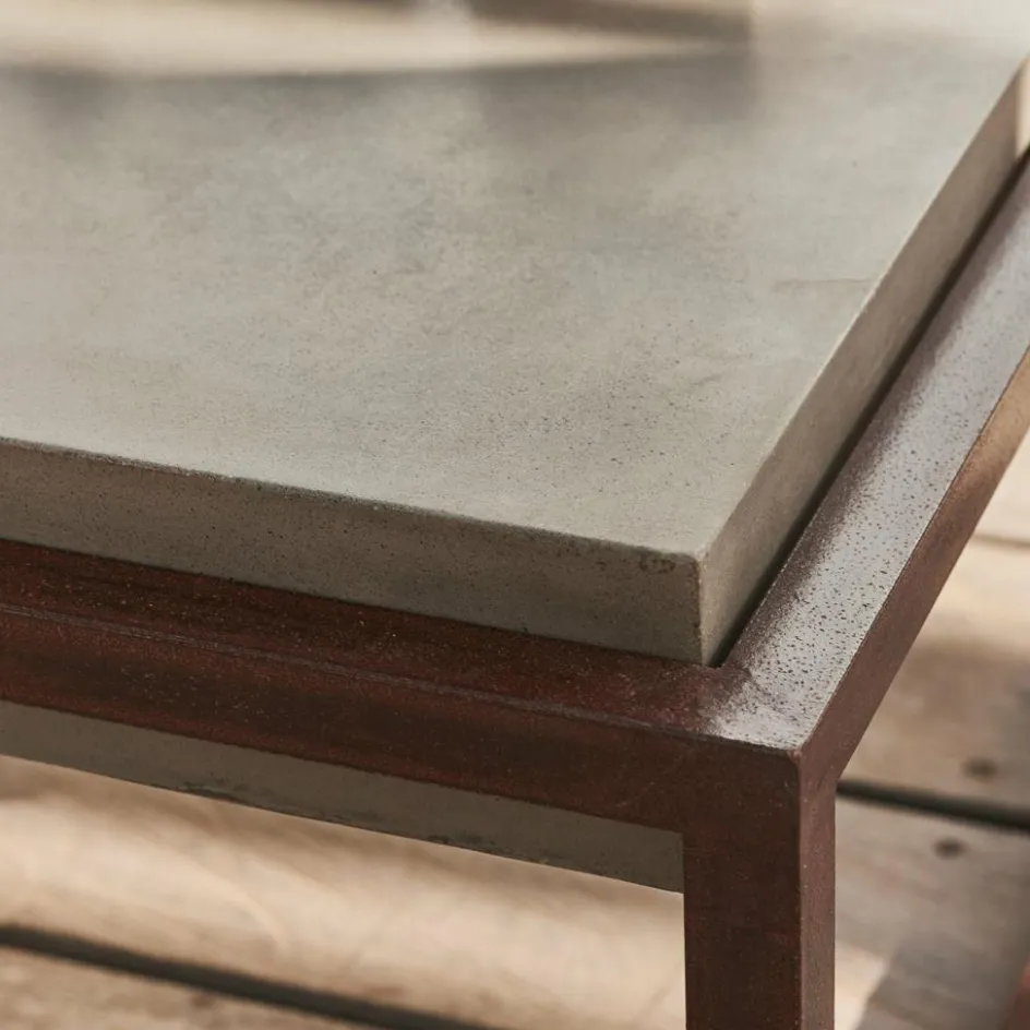 Schon der Mix der beiden Materialien wird das Herz vieler Interieur-Trendsetter höher schlagen lassen, denn sowohl Beton wie Stahl sind im Moment die Shooting-Stars im modernen Möbel-Design. Beide haben ihre Heimat im konstruktiven Baugewerbe, ihre unschlagbaren Eigenschaften lassen sich aber auch hervorragend für den Möbelbereich nutzen, denn beide sind sehr robust und sogar frostfest. Kein Wunder also, dass der Designer für diesen Couchtisch ein Gestell aus stabilem Flachstahl wählte, das erstaunlich filigran wirkt, aber über eine enorme Tragfähigkeit verfügt. Deshalb ist es auch in der Lage, die darauf liegende Tischplatte zu tragen, zu der es mit seinem braunen Finish einen warmen Kontrast setzt. Die Tischplatte besteht aus Beton, der durch die Beimischung verschiedener Stoffe noch härter und widerstandsfähiger gemacht wurde. Das Ergebnis ist ein Couchtisch, der den ganzen Sommer über draußen im Freien stehen bleiben kann. Vor Regen und auch Frost sollten Sie ihn dennoch schützen, am besten einfach abdecken oder im Winter dann innen lagern. Was allerdings nicht bedeutet, dass dieser Couchtisch immer zwingend im Garten eingesetzt werden muss. Immer häufiger werden solche modernen Tischkonstruktionen auch im Wohnbereich platziert, denn sie passen tatsächlich zu den verschiedensten Sitzmöbeln: zu einer gemütlichen Rattan-Sitzgruppe wie zu einer eleganten Wohnlandschaft im italienischen Stil. Und wer gewagte Kontraste liebt, kombiniert diesen Couchtisch mit zwei Sesseln im Barock-Stil.
