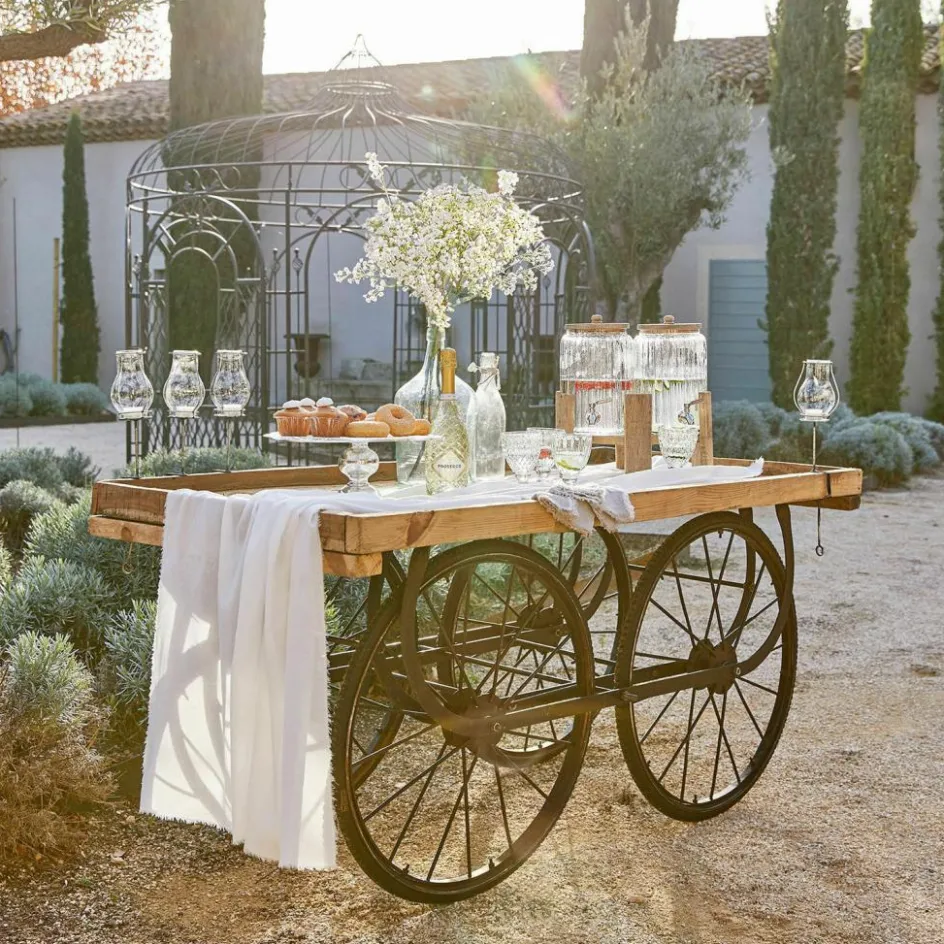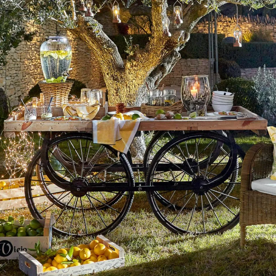 Ein Tisch mit Wow-Effekt! Wenn man diese enthusiastischen Worte in den Mund nehmen möchte, dann für diesen Beistelltisch. Er wirkt wie das Werk eines modernen Künstlers, der über Flohmärkte schlendert und in aufgelösten Fabrikhallen unterwegs ist, um später in seinem Atelier die verschiedensten Dinge mit sicherer Hand und viel Kreativität miteinander zu kombinieren. So ist augenscheinlich auch dieser originelle Beistelltisch entstanden, der mit seiner Persönlichkeit in den verschiedensten Interieurs ein charakterstarkes Statement setzen wird. Als Tischplatte fungiert hier eine rustikale Holzplatte, die aussieht, als hätte sie schon einiges gesehen in ihrem Leben. Was der Wahrheit entspricht, denn es handelt sich um sorgfältig wiederaufbereitetes Holz, so dass jede Tischplatte ein Unikat ist. Die wirklich überraschende Komponente ist aber das Gestell in Form von antiken Eisenrädern, wie sie früher im industriellen Umfeld zum Einsatz kamen und mit denen der Tisch zum exklusiven Eyecatcher wird. Zeigen Sie offen Ihre Passion für kreatives Design – mit diesem außergewöhnlichen Beistelltisch.