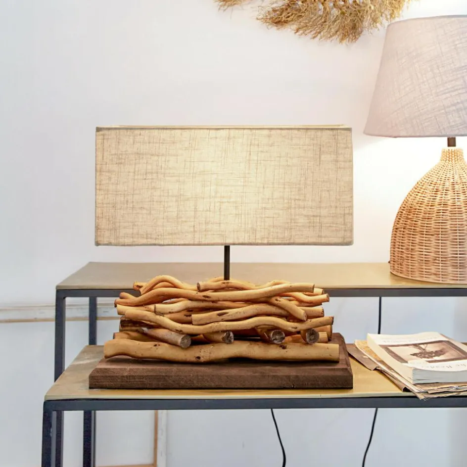 Der Fuß der Tischlampe besteht aus handbearbeiteten Treibhölzern – so ist garantiert: Jede Lampe ist ein echtes Unikat. Einen klassischen Touch bekommt die maritim anmutende Leuchte dank des schlanken Metallständers und des leinenfarbenen Lampenschirms aus einem hochwertigen Leinen-Baumwoll-Mix. Die schlichte, gradlinige Form steht im stilvollen Kontrast zum angehäuften Treibholz und kommt als wortwörtliches Highlight auf einer Kommode oder einem Beistelltisch besonders gut zur Geltung.