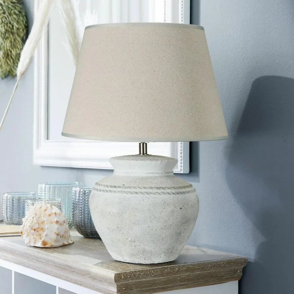 Tischleuchten spenden nicht nur Helligkeit, sondern sie helfen auch dabei, das Zuhause in ein perfektes Licht zu rücken. Mit der richtigen Akzentbeleuchtung lässt sich die Wirkung und Atmosphäre eines Raumes komplett verändern. Dass sich mit Hilfe von Licht unterschiedliche Stimmungen erzeugen lassen, wussten schon unsere alten Vorfahren. Damit wären wir auch schon bei diesem speziellen Modell, das eine ganz besondere Ausstrahlung hat. Der Lampenfuß wurde aus Keramik gefertigt und punktet mit einem Finish im Antik-Look sowie raffinierten Reliefs. Der Lampenschirm aus grob gewebtem Leinenstoff komplimentiert das stilvolle Design und streut das Licht sehr angenehm, dank seiner großzügig dimensionierten Öffnungen. Mit dieser Tischleuchte lassen sich eine Vielzahl von Designästhetiken von klassisch bis zeitgenössisch und mehr ergänzen.