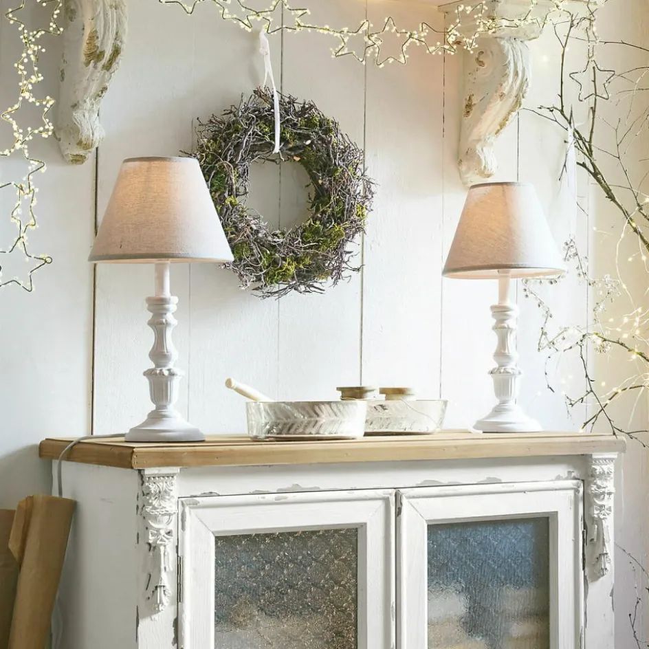 Dieser bezaubernde Lichtspender wirkt angenehm unaufdringlich, was nicht nur dem klassischen Vintage-Design, sondern auch der dezenten Farbkombination geschuldet ist. Ihre attraktive Geometrie, mit glatten Rundungen, macht sie ebenfalls sehr vielseitig kombinierbar. Der gedrechselte Fuß aus Holz zeigt antike Musterungen und wird mit einem feinen Shabby-Finish hübsch abgerundet. Passend dazu wurde als Lampenschirm ein Bezug aus reinem Leinen gewählt, derfarblich wunderbar mit dem hellen Fuß harmoniert. Eine stilvolle Beleuchtung, die jeden Nachttisch, Beistelltisch oder Schreibtisch optimal in Szene setzt.