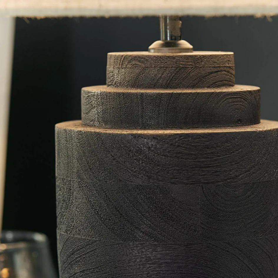 Erleben Sie die perfekte Symbiose aus Natur und Eleganz mit dieser exquisiten Tischlampe. Der Fuß, aus handgedrechseltem Holz gefertigt und in einer edlen Farbe gefärbt, strahlt handwerkliche Kunstfertigkeit und rustikalen Charme aus. Der Schirm aus feinem Leinen sorgt für ein sanftes, angenehmes Licht, das Ihre Wohnräume in eine behagliche Atmosphäre taucht. Diese Lampe ist nicht nur eine Lichtquelle, sondern auch ein Statement für Stil und Qualität. Ihre harmonische Form und die Verwendung natürlicher Materialien machen sie zu einem besonderen Highlight in jedem Zuhause.