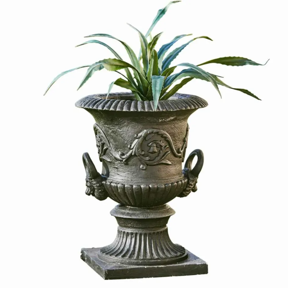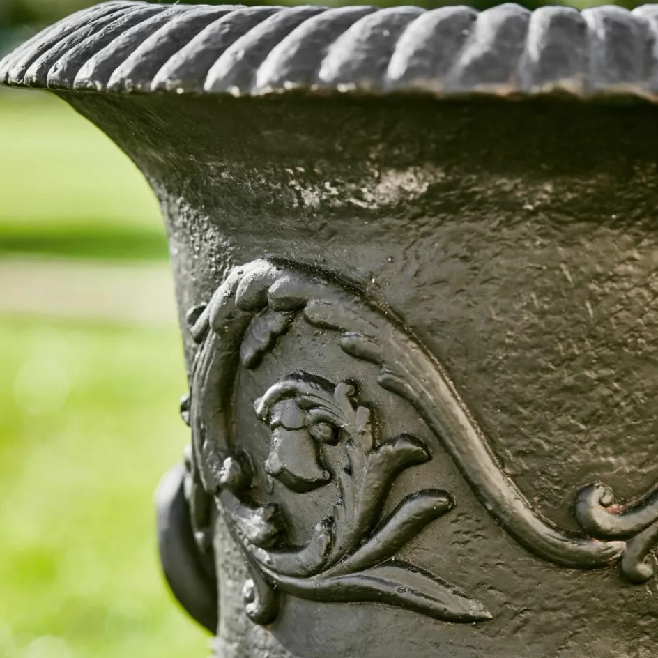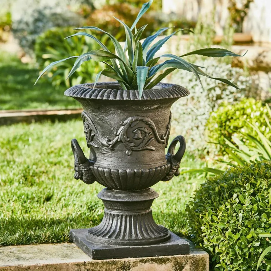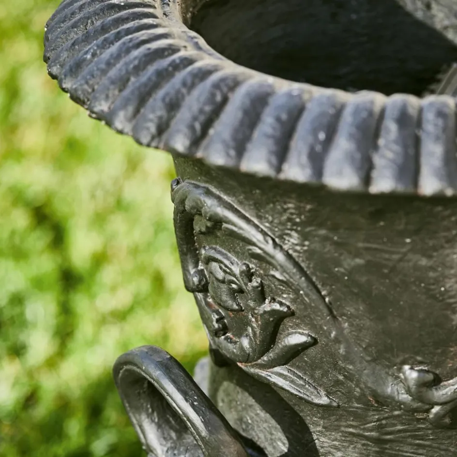 Dieses Prachtstück verwandelt jeden Garten in eine Art Freilandmuseum und ist von einer antiken Amphore kaum zu unterscheiden. Auch die üppigen Verzierungen entsprechen historischen Originalen, wie man sie immer noch in vielen Orangerien bewundern kann. Unser Modell besteht aber nicht aus zentnerschwerem Metall, sondern aus Polyresin. Die hohe Material- und Verarbeitungsqualität ist wirklich überzeugend, denn einen Unterschied zwischen Original und Kopie erkennen dürften wohl nur Experten. Um lange Freude an diesem Schmuckstück zu haben, lagern Sie die Amphore im Winter am besten im Innenbereich.