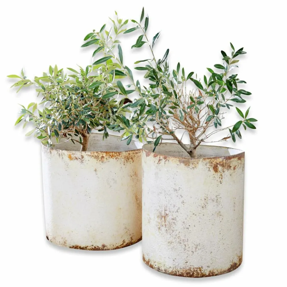 Ein wunderbarer Rahmen für duftende Blüten, Gräser und Grünpflanzen – diese beiden wertvollen Übertöpfe aus Eisen haben besonderen Charme. Durch ein starkes Antik-Finish erhalten sie eine stilechte Patina und erscheinen wie Fundstücke aus früheren Zeiten. Wer den Shabby-Chic schätzt, wird sie mögen. Das langlebige Duo erhalten Sie in zwei Größen als harmonisches Set. Gestalten Sie Balkon und Terrasse oder auch Ihre Innenräume hiermit kreativ und setzen Sie blühende Akzente, vielleicht auf der Fensterbank. Wer möchte, könnte das schicke Doppel auch zum Aufbewahren kleiner Gegenstände nutzen und so charmant für Ordnung sorgen.