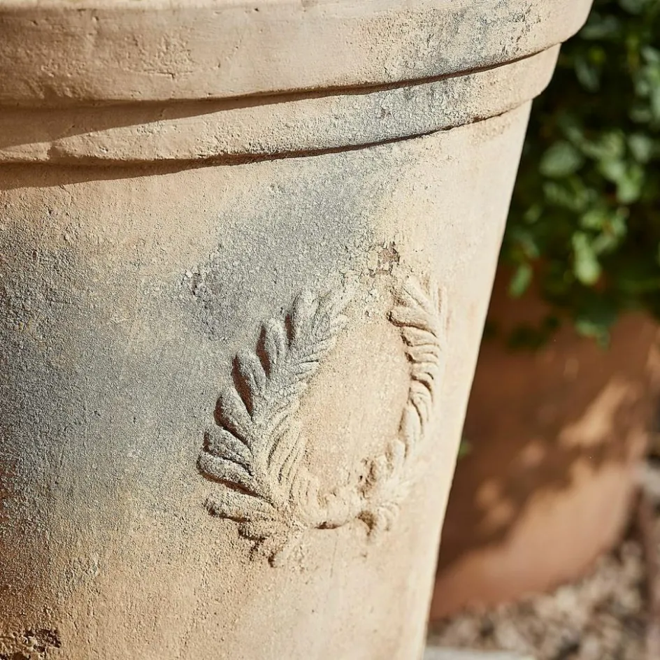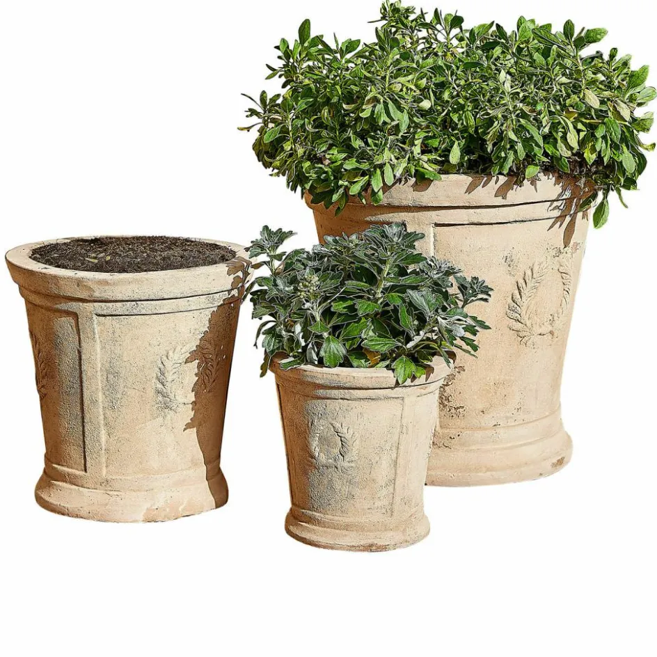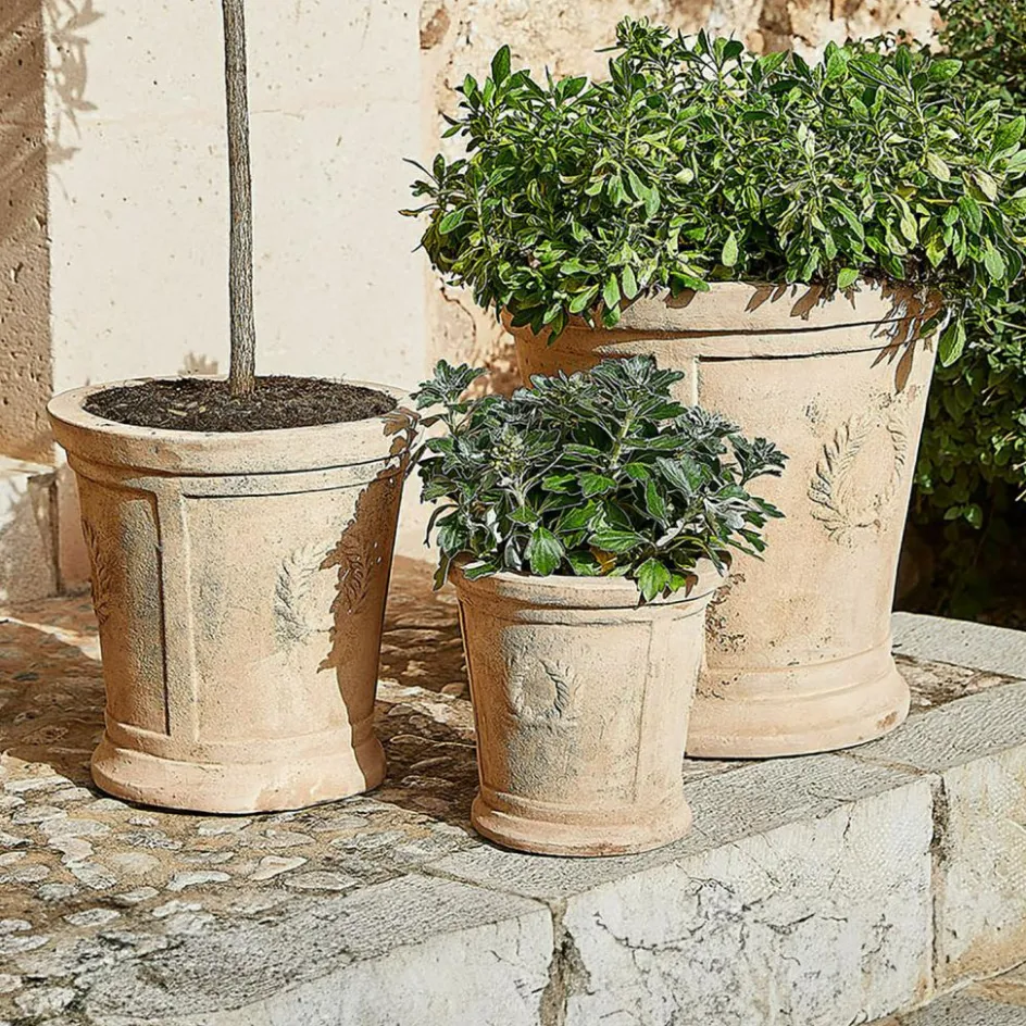 Dieses Übertopf-Set verleiht Ihrem Außenbereich zeitlosen Charme. Die sanfte, erdige Farbgebung des Tons harmoniert perfekt mit jeder Umgebung, während die feinen Lorbeerkranz-Reliefs an traditionelle mediterrane Designs erinnern. Jede der drei Größen bietet vielfältige Möglichkeiten, um Ihre Lieblingspflanzen stilvoll zu präsentieren. Das praktische Wasserablaufloch unterstützt eine gesunde Entwicklung der Wurzeln und schützt Ihre Pflanzen vor Staunässe. Ob auf der Terrasse, im Garten oder auf dem Balkon – diese Übertöpfe setzen Ihre Pflanzen in Szene und schaffen eine Atmosphäre von natürlicher Schönheit.