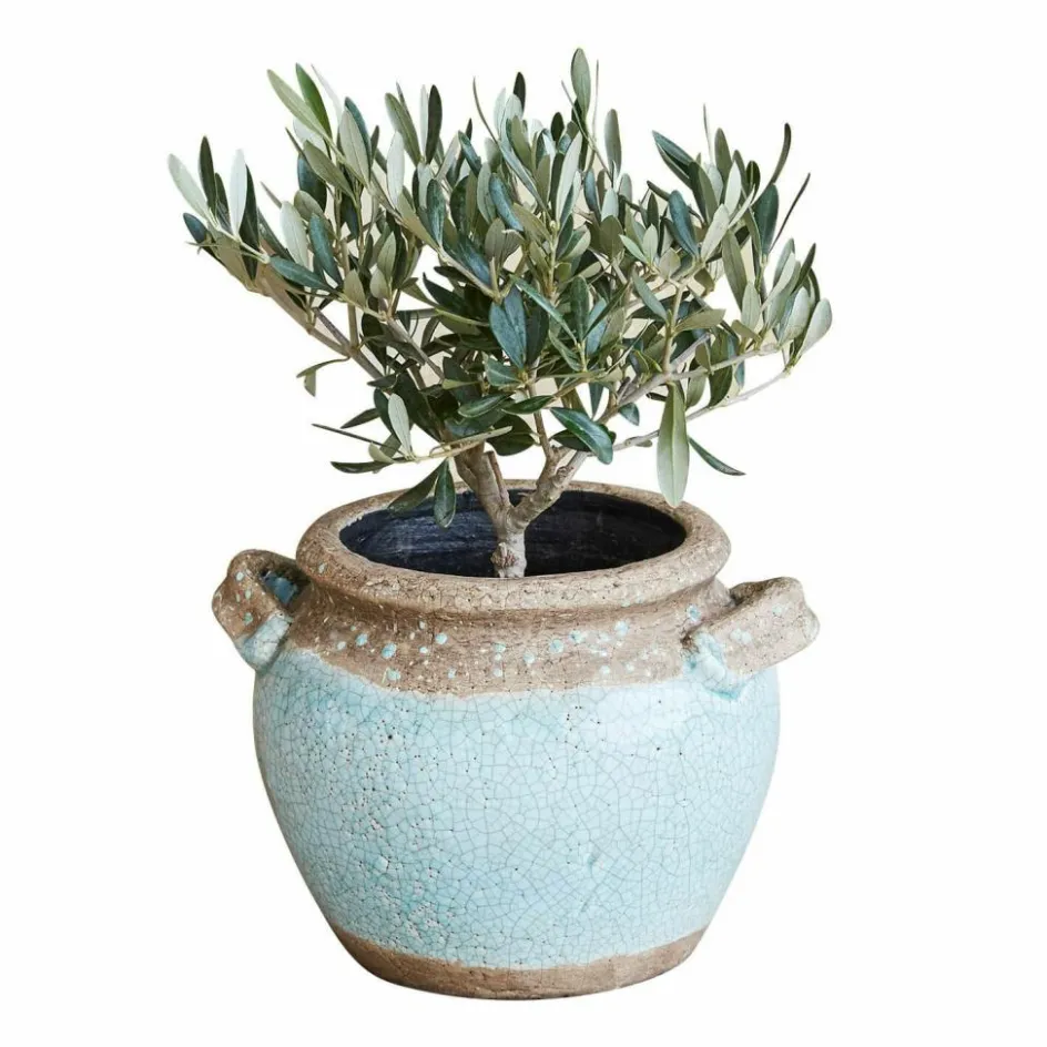 Dieser hübsche Übertopf mit kleinen Henkeln bringt den Charme des Mittelmeeres zu Ihnen. Seine mediterrane Note entführt uns optisch in den sonnigen Süden. Er bietet das ideale Plätzchen für Gräser, Grünpflanzen und Blüten, die sich darin dank des naturnahen Materials besonders wohlfühlen. Auch Küchenkräuter könnten Sie hier hübsch einpflanzen, und so immer frisches Basilikum und Co. naschen. Auf dem Balkon, der Fensterbank oder im Garten versprüht dieser schön gestaltete Übertopf ein angenehmes Urlaubsflair. Wer mag, könnte ihn alternativ auch zum Aufbewahren kleiner Gegenstände nutzen – ein Multitalent.