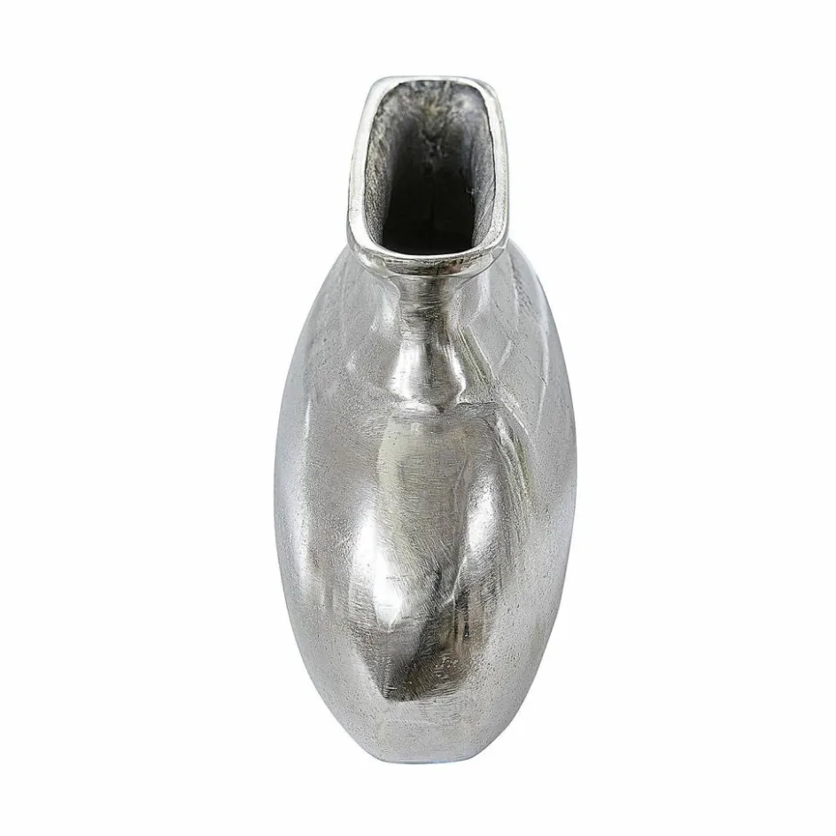 Entdecken Sie die zeitlose Schönheit dieser außergewöhnlichen Vase aus massivem Aluguss. Ihre längliche Form und das glänzende, silberfarbene Finish fangen das Licht auf wunderbare Weise ein und setzen bezaubernde Akzente in Ihrem Interieur. Die glatte, leicht strukturierte Oberfläche verleiht der Vase eine einzigartige Haptik und bringt eine gewisse Raffinesse in jede Umgebung. Ob gefüllt mit farbenfrohen Blumen oder als eigenständiges Kunstwerk – diese Vase zieht alle Blicke auf sich und bereichert Ihr Zuhause mit einer modernen, luxuriösen Note. Platzieren Sie sie auf einem Sideboard, dem Esstisch oder in einem Regal, um Ihre Einrichtung stilvoll aufzuwerten.