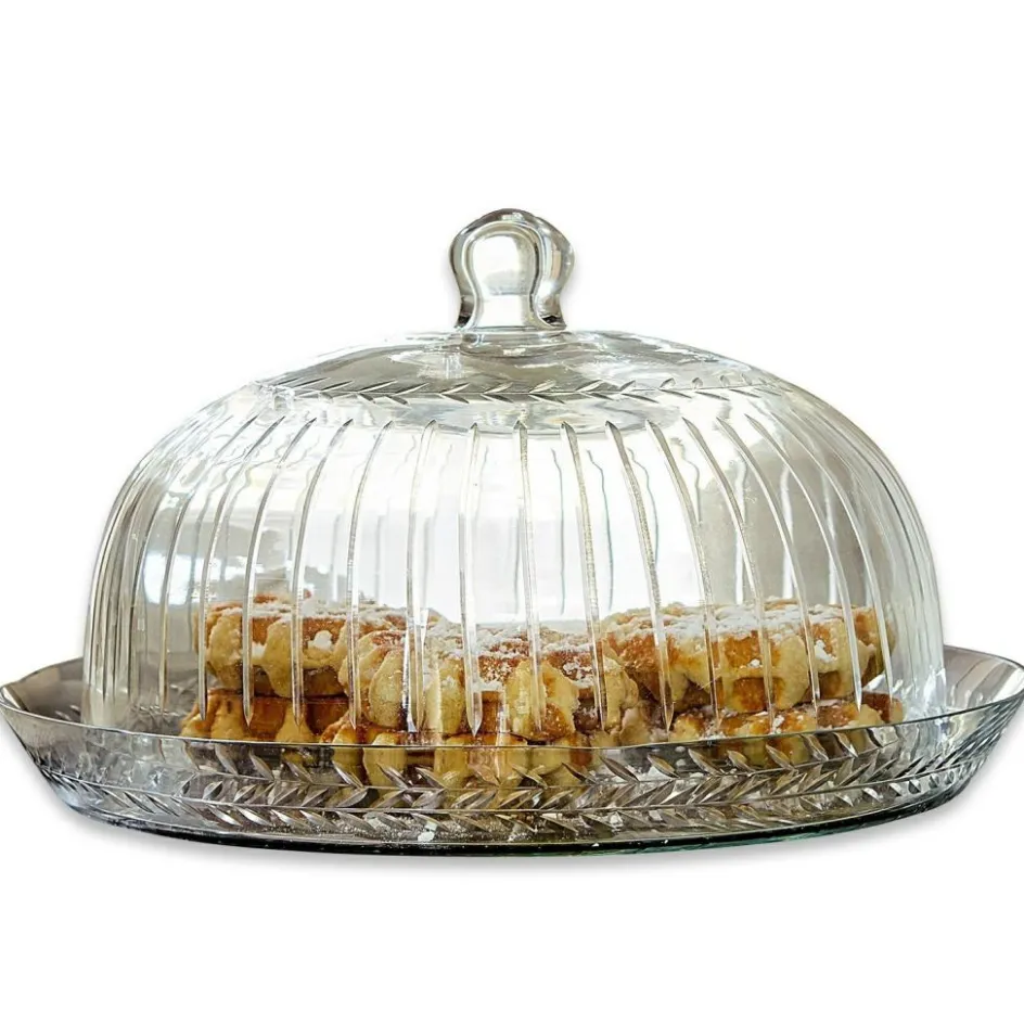 Dieses wunderschöne Accessoire versprüht nostalgisches Flair und adelt jede Tafel. Das stabile klare Glas zieren zarte Schliffe. Im unteren Teil säumt ein zauberhafter Rautenschliff das Modell, und auch auf der gläsernen Haube sind aufwendige Schliffe mit viel Vintage-Charme aufgebracht. An einem handlichen und formschönen Glasknauf lässt die Haube sich leicht anheben. Ein Design, das wie ein liebgewonnenes Erbstück oder ein seltener Flohmarkt-Fund wirkt. Hierauf bleibt alles schön frisch und ist vor Fliegen, Bienen und Wespen geschützt. Es eignet sich ideal, um einen leckeren Kuchen oder eine Torte darauf zu präsentieren. Der Durchmesser der gläsernen Tortenplatte ist exakt darauf ausgerichtet. Doch auch Obst oder Gemüse, Kekse oder eine köstliche Käse-Auswahl lässt sich ideal darauf anrichten. Jede hübsch gedeckte Tafel gewinnt damit an viel Stil – auch für Feste eine ausgezeichnete Wahl. Wir wünschen guten Appetit!