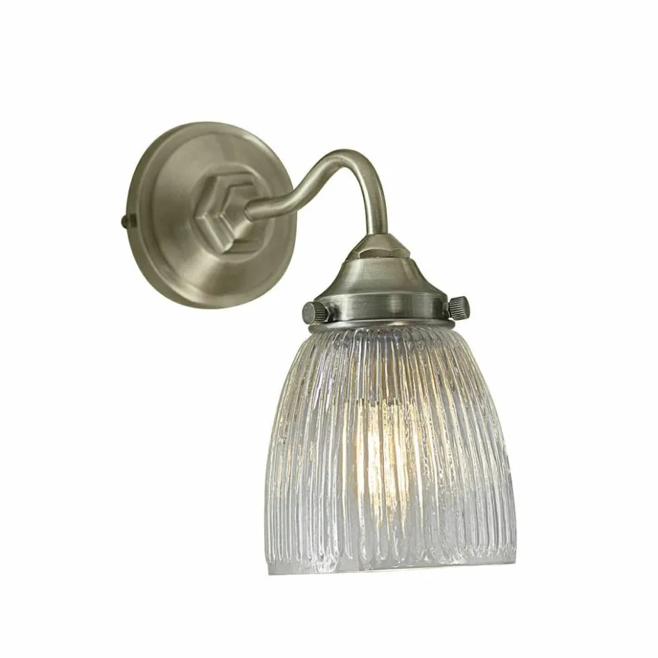 Mit dieser Wandlampe können wir Ihnen eine stilvolle Lichtquelle für viele Wohnsituationen präsentieren. Die Lampe empfängt Sie mit ihrem anheimelnden Lichtschein gleich beim Betreten der Wohnung über einer Kommode, sie spendet ihr Licht aber auch im Wohnraum neben dem Lieblingssessel oder macht sich als Duo im Schlafzimmer rechts und links neben dem Bett ausgezeichnet. Die Wandlampe kann sogar Ihren Arbeitsplatz in der Küche beleuchten, denn sie hat die Schutzklasse IP 21 und ist deshalb auch für Räume geeignet, in denen sich temporär Kondenswasser bilden kann. Dank des schnörkellosen Designs und der Materialkombi aus Eisen und Klarglas harmoniert sie mit vielen Einrichtungsstilen. Einziger Schmuck ist das klassische Rillenmuster im Glas, das wunderschön mit dem antikmessingfarbenen Finish des Eisens korrespondiert und für die exklusive Note sorgt. Tipp: besonders gemütlich wirkt das Licht der Wandlampe, wenn Sie ein LED-Leuchtmittel in einer warmen Lichtfarbe wählen.