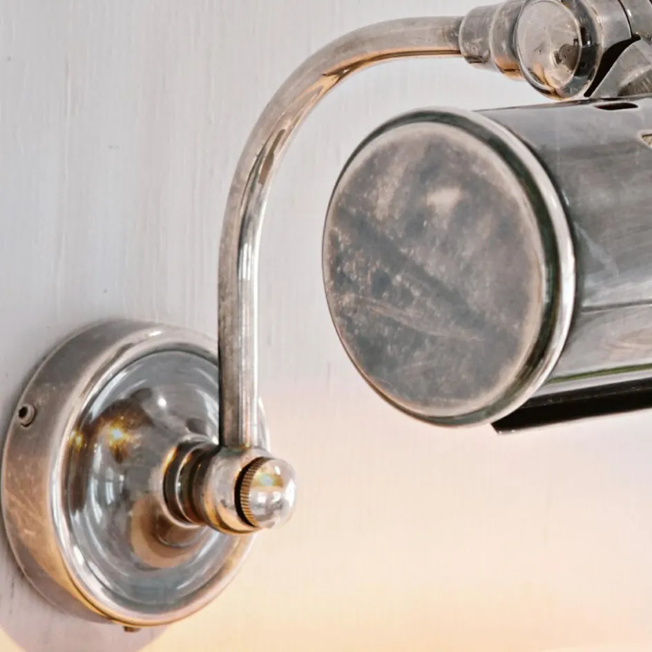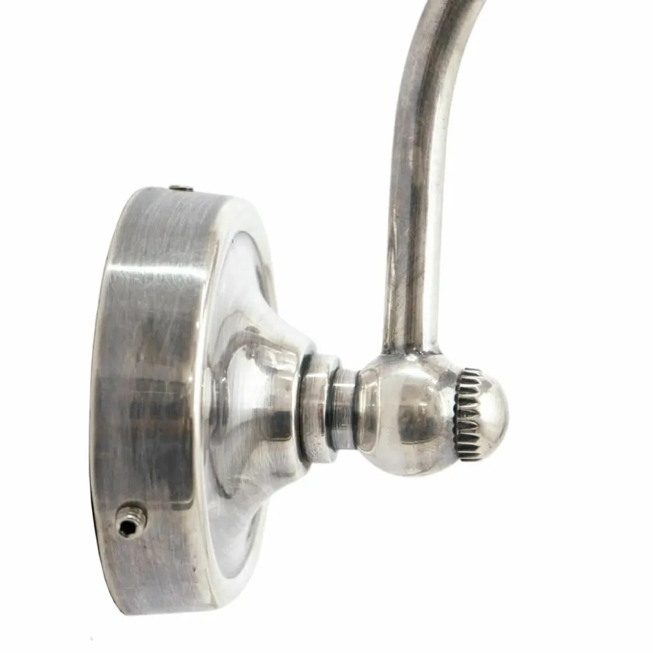 Ob über einem Bild, im Flur oder über dem Kopfende des Bettes – diese Wandlampe punktet mit einem zeitlosen Design. Das massive Messing ist mit einem Antiksilber-Finish versehen. Praktisch ist die Wandlampe außerdem: Ein Gelenk mit einer Flügelschraube lässt den Neigungswinkel ganz einfach und individuell bestimmen. Liebevolle Details wie die gebogene Halterung lassen die Lampe ganz besonders edel wirken.