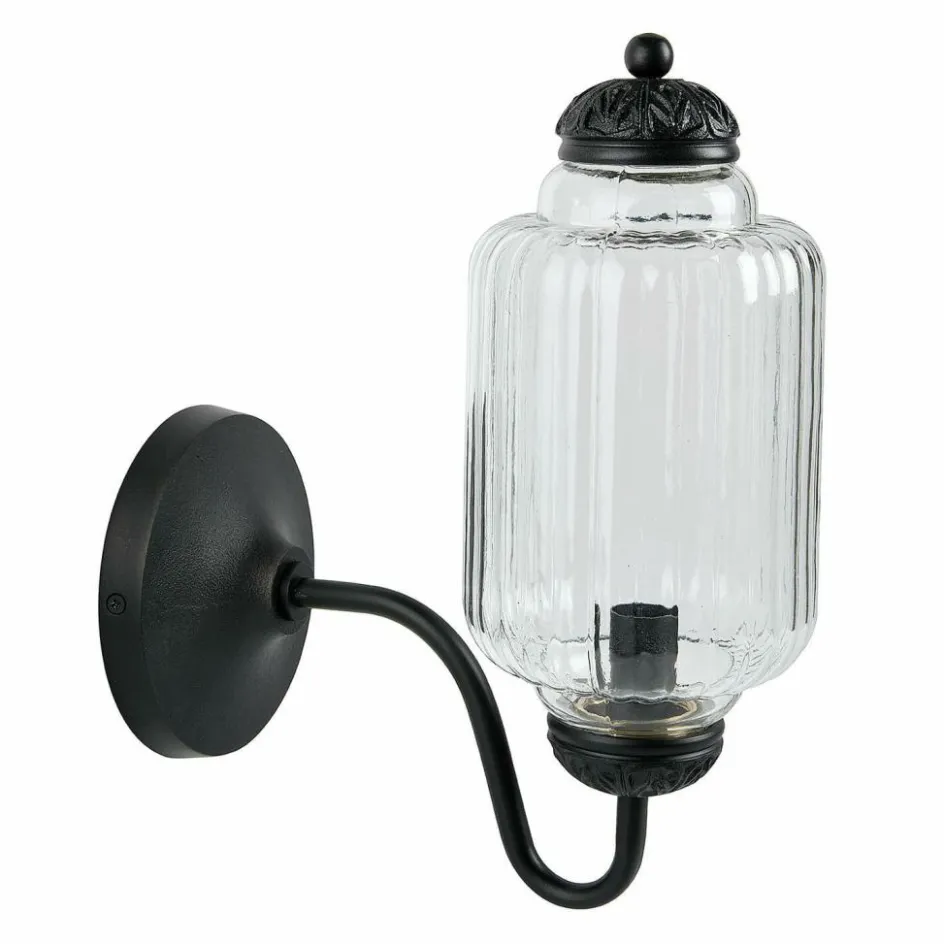 Ein Stück zeitlose Ästhetik für Ihre Wände – diese Wandlampe vereint kunstvolle Details mit funktionaler Beleuchtung. Der Lampenschirm aus klarem Glas mit feinem Rillenmuster erzeugt eine zauberhafte Lichtbrechung, die den Raum in eine warme Atmosphäre taucht. Die geschwungene Halterung in Mattschwarz verleiht dem Design Tiefe und einen Hauch von Nostalgie. Ob einzeln als Akzent oder paarweise neben Spiegeln und Betten arrangiert – diese Lampe bringt stilvolles Licht in Ihr Zuhause.