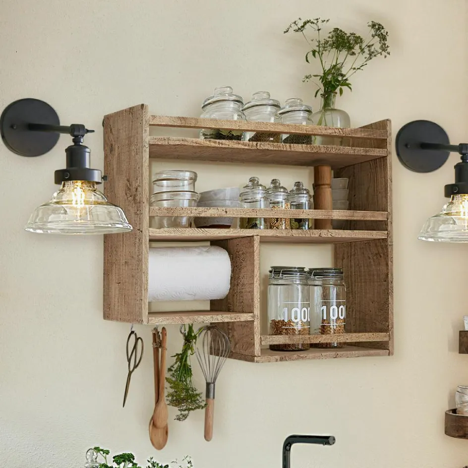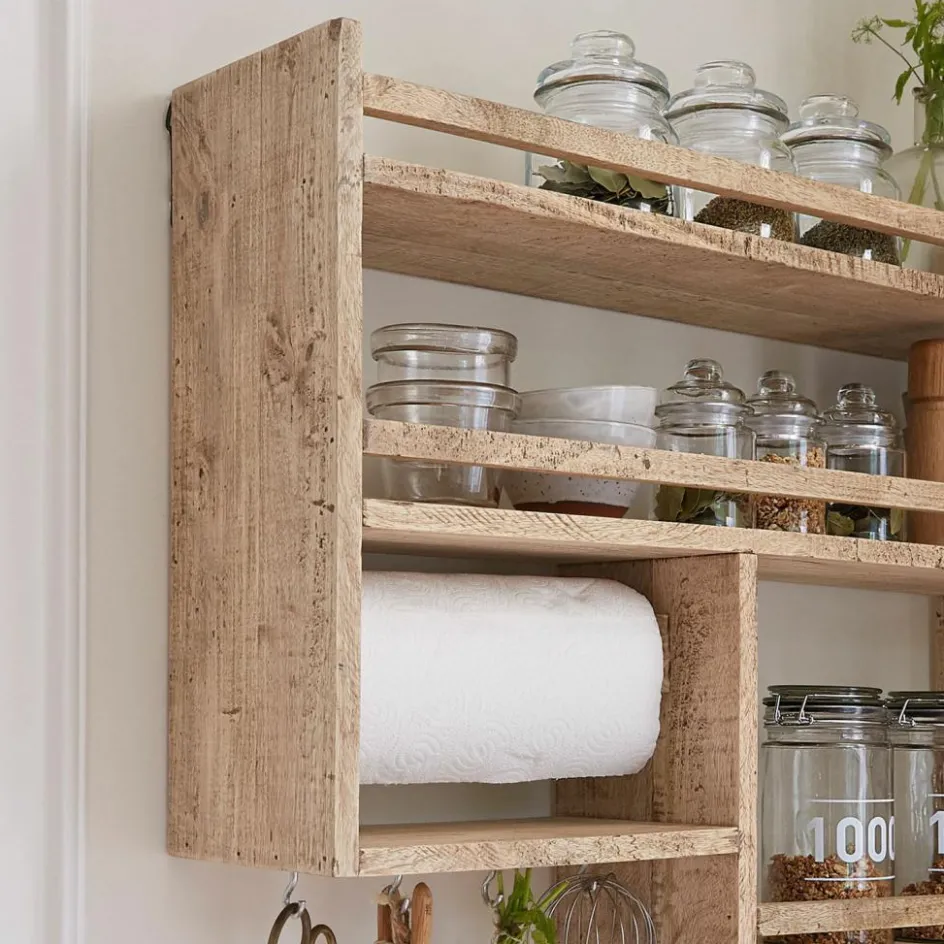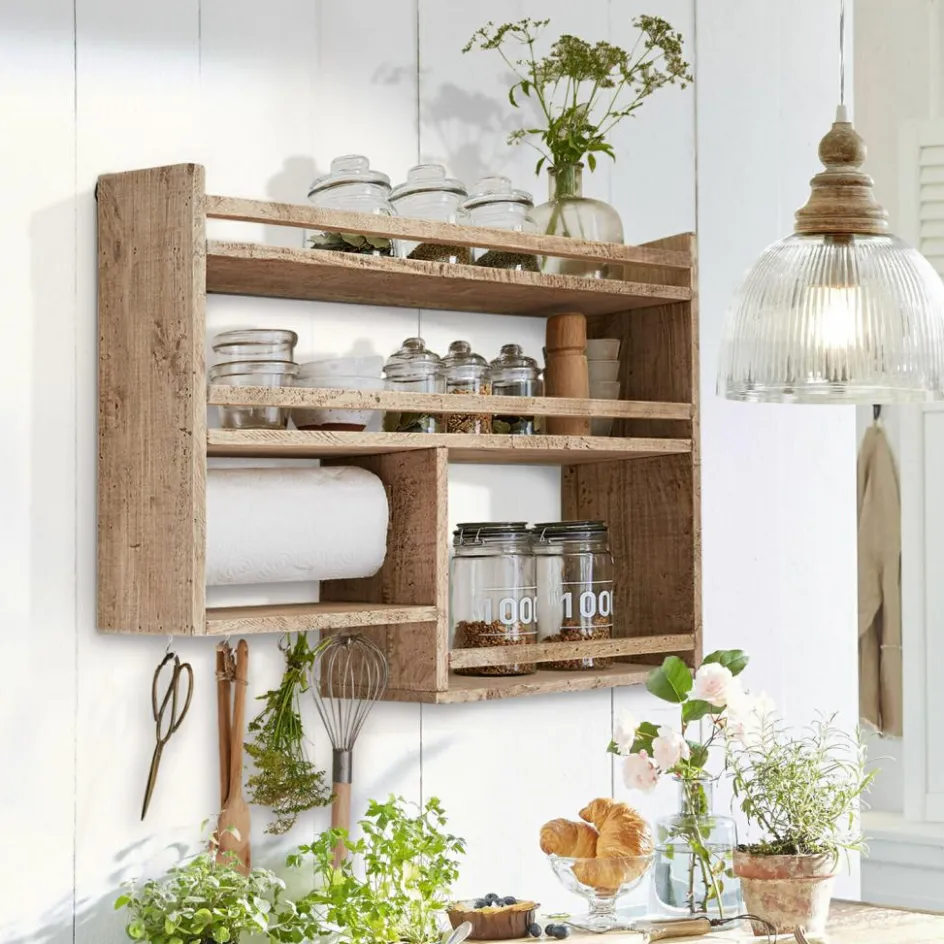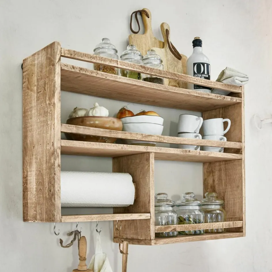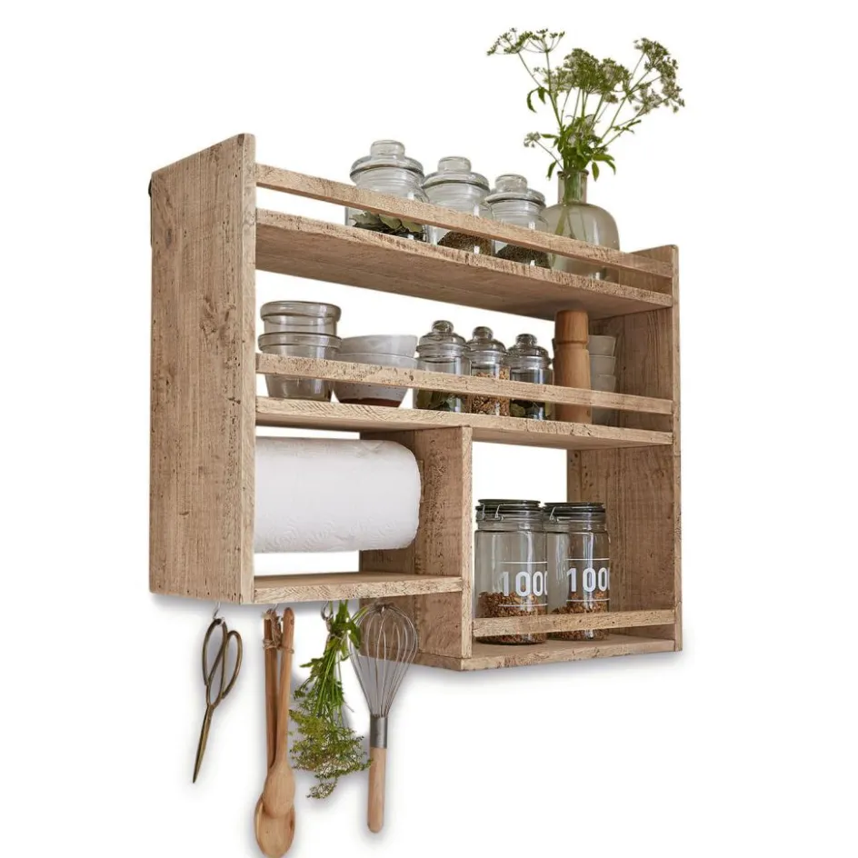 Thymian und Oregano, Kurkuma und Koriander, Safran und Zimt, Himalaya-Salz und Szechuan-Pfeffer – Kochen ohne Gewürze und Kräuter ist für ambitionierte Hobby-Köche und Gourmets undenkbar. Deshalb müssen alle Spezereien, wie die kostbaren Aromen früher genannt wurden, stets griffbereit sein, um diesem Süppchen und jenem Ragout, dem deftigen Braten wie dem feinen Fisch den letzten Pfiff zu verleihen. Als Standort für alle Gewürze, die Sie beim Kochen gerne schnell zur Hand haben, ist dieses Gewürzregal ideal. Es ist mit verschieden hohen Fächern ausgestattet, so dass auch unterschiedlich große Formate in dem Regal ihren Platz finden. Für besonders hohe Gefäße bietet sich das oberste Fach an, das mit einer praktischen Reling versehen ist, die Ihre Gewürzdosen und Gläser vor dem Herunterfallen schützt. Ab jetzt werden Sie nie wieder hektisch in Küchenschubladen nach einem bestimmten Gewürz suchen müssen, denn Sie finden es übersichtlich angeordnet in Ihrem neuen Gewürzregal. Auch die Küchenrolle, die Sie beim Kochen sicherlich oft brauchen, hängt griffbereit im Gewürzregal. Neben der Funktion als Ordnungs- und Küchenhilfe ist das Gewürzregal aber auch ein optischer Genuss. Mit dem naturbelassenem Mangoholz und der schlichten Formgebung passt es zu den verschiedensten Küchenstilen: von ländlich-rustikal bis zu modern-funktional.