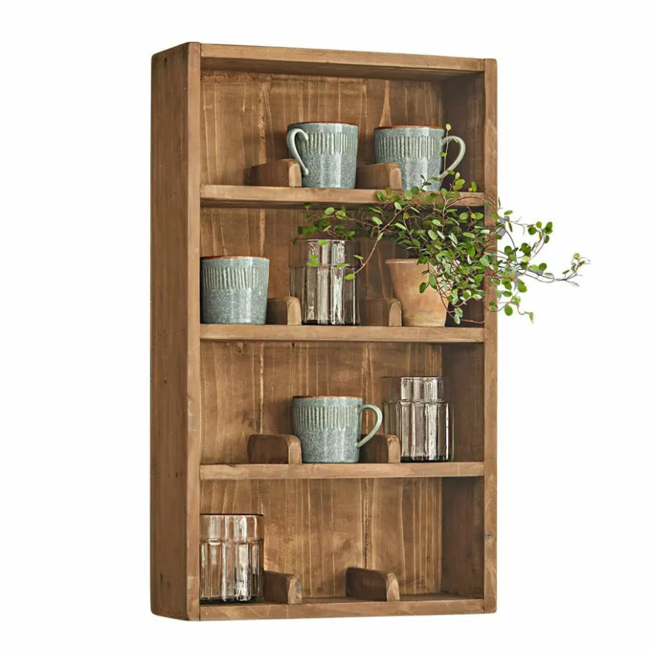 Dieses Wandregal bringt nicht nur funktionalen Stauraum in Ihr Zuhause, sondern auch ein Stück Natur und Geschichte. Gefertigt aus wiederaufbereitetem Holz, trägt es die Zeichen der Zeit in seiner Maserung und Oberfläche und erzählt damit seine ganz eigene Geschichte. Jedes Regal ist einzigartig und strahlt mit seinem warmen, rustikalen Finish einen besonderen Charme aus. Die praktischen Regalfächer bieten Platz für Tassen, Gläser oder dekorative Lieblingsstücke und setzen diese gekonnt in Szene. Ob in der Küche, im Wohnzimmer oder im Essbereich – dieses Wandregal fügt sich harmonisch in jedes Ambiente ein und bringt einen Hauch von Landhausstil in Ihr Zuhause.
