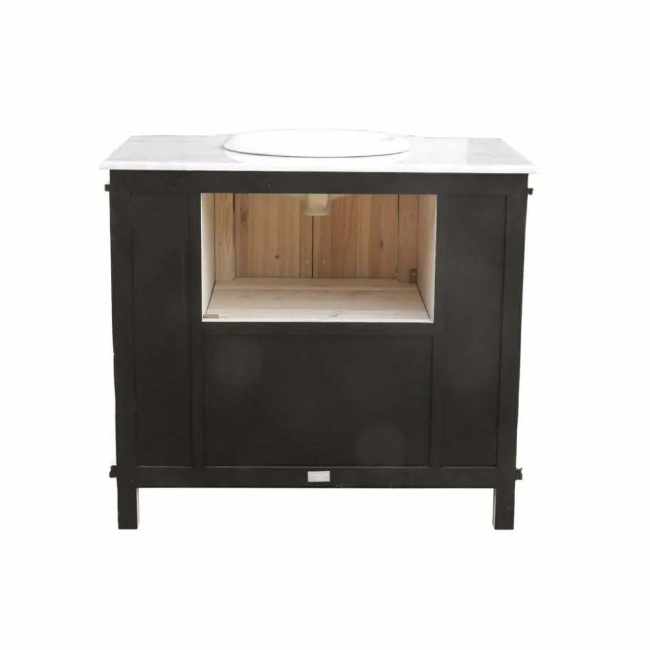 Das prachtvolle Bad-Möbel aus massivem Tannenholz besticht mit einer zeitlosen Kassettenoptik und einem zeitlosen, dezenten White-Washed-Finish. In die Mamorplatte ist ein ovales Keramikwaschbecken eingelassen. Und das Beste: Der Waschtisch punktet auch mit inneren Werten. Hinter den zwei Mitteltüren und in den insgesamt acht Schubladen verbirgt sich jede Menge Platz für allerlei Kleinkram, Handtücher, Kosmetika und andere Badutensilien.
