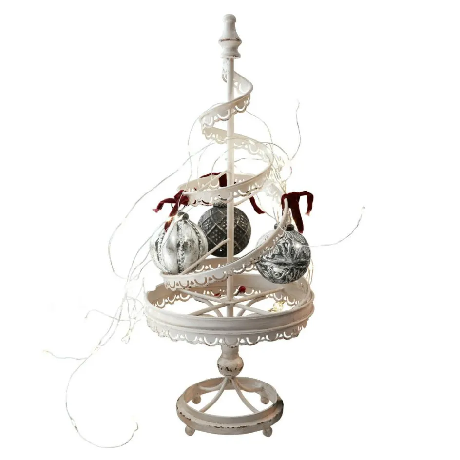 Der Deko-Baum aus Eisen wurde in Handarbeit gefertigt und mit einem cremefarbenen Finish versehen. Der Standfuß ist stabil und wertig gearbeitet. Die Gesamtkonstruktion überzeugt mit hoher Qualität und einem zeitlosen Design. Je nach Geschmack und Trend lässt sich der individuelle Christbaumersatz immer wieder neu dekorieren, mit Kugeln behängen oder mit einer Lichterkette und einer Girlande aus Tannengrün umschlingen. (Kugeln exklusive)