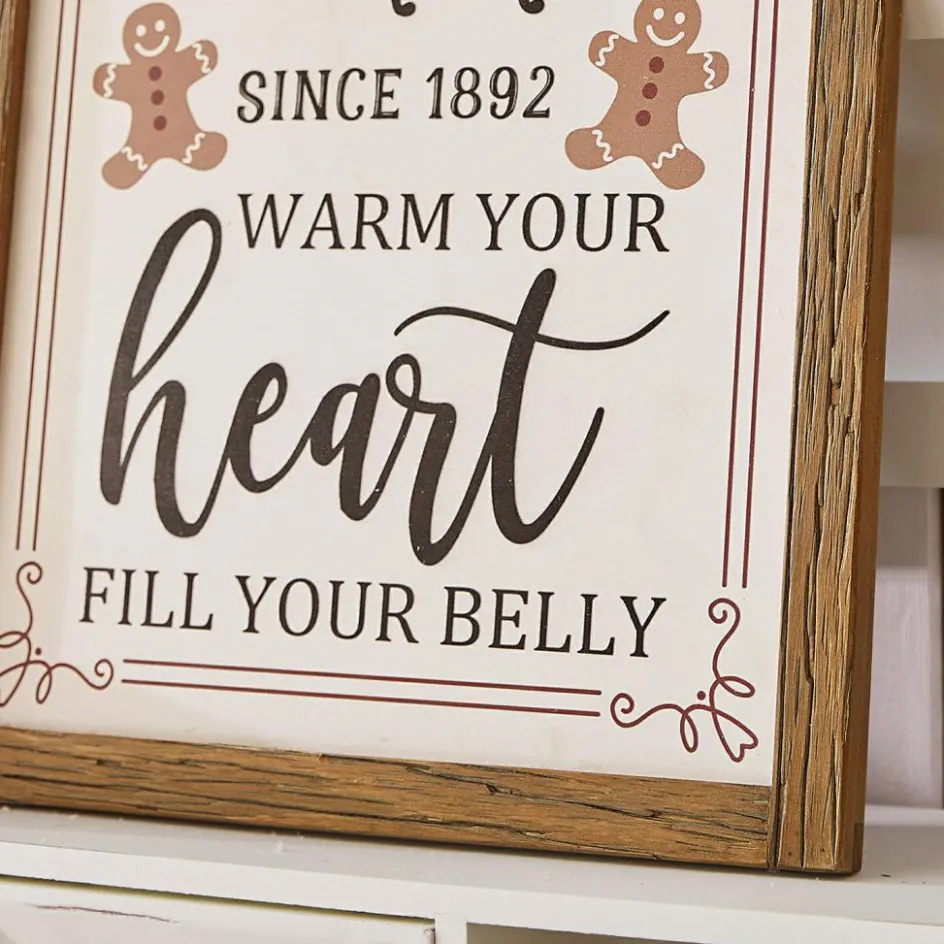 Beim Betrachten dieses Deko-Boards fühlt man sich sofort wie in einer der alten Traditionsbäckereien der wunderschönen Hamptons. „Wärme dein Herz. Fülle deinen Bauch“, lautet die charmante Botschaft, die von zwei knuffigen Pfefferkuchenmännchen flankiert wird. Der nostalgische Print wirkt wunderbar authentisch und verströmt ein positives Lebensgefühl. Der hochwertige Kiefernholzrahmen bildet einen tollen Kontrast und sorgt mit seiner natürlichen Holzmaserung für bewundernde Blicke. Der hochwertige Gesamteindruck wird von einer robusten Metallhalterung abgerundet, die sich auf der Rückseite verbirgt.