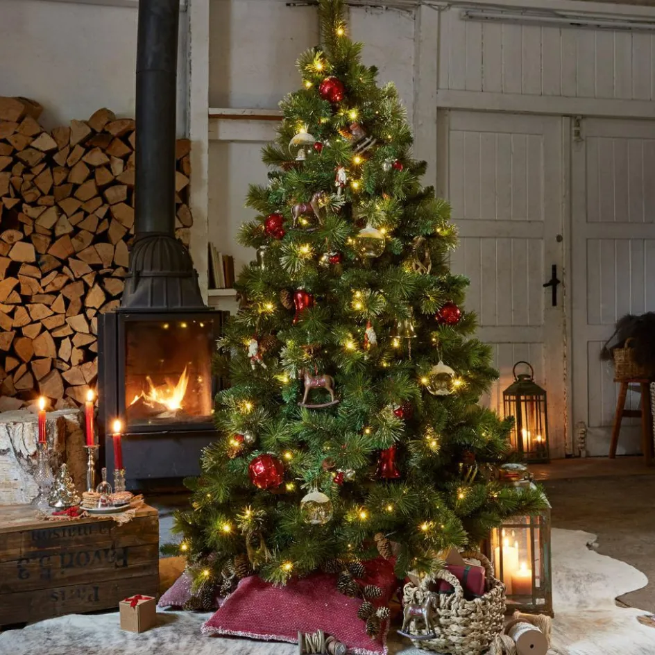 Ein wahres Prachtstück. Der große, imposante Baum mit perfektem Wuchs ist eine sehr natürliche Nachbildung. Das edle und wertvolle Design bleibt für immer frisch, sodass Sie es wirklich immer wieder verwenden können und sich niemals über fallende Nadeln, eine krumme Form oder einen trockenen Baum ärgern müssen. Echte Zapfen geben ihm noch mehr Charakter, und ganze 200 warmweiße LEDs illuminieren den langlebigen Weihnachtsbaum gemütlich. Dafür sorgt die dezent integrierte Lichterkette. Sie wird mit Strom betrieben, sodass lästiges Batterien wechseln entfällt und die festliche Tanne lange leuchten kann. Durch die langfristige Nutzung werden auch Ressourcen geschont und es müssen keine echten Bäume gefällt werden – ein schöner Vorteil für alle, die an die Umwelt denken. Wir wünschen viel Freude beim Schmücken und jedes Jahr wieder ein besinnliches Fest mit diesem zauberhaften, immergrünen Weihnachtsbaum.