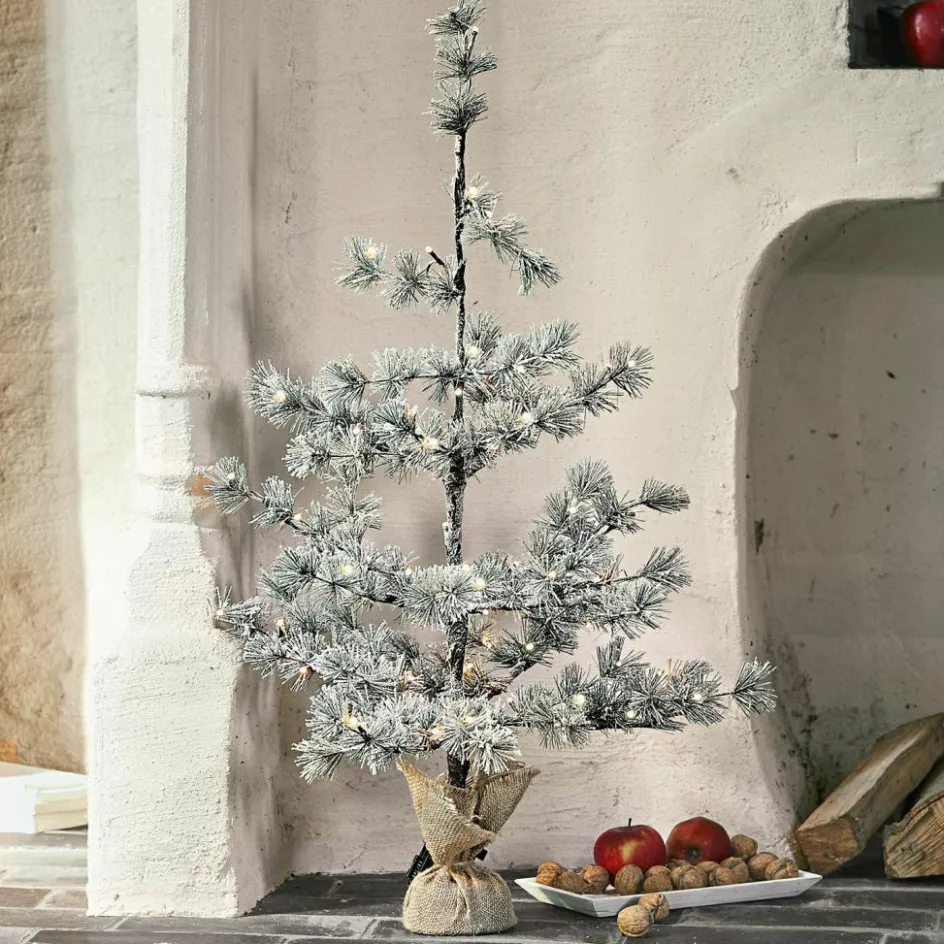 Erwecken Sie die Magie der Weihnachtszeit mit unserem liebevoll handgefertigten Weihnachtsbaum zum Leben. Die realitätsgetreuen Nadeln mit Schneeoptik entführen Sie in eine winterliche Welt, die an einen verträumten Wald erinnert. Der Weihnachtsbaum ist mit einer integrierten LED-Lichterkette ausgestattet, die mit 40 warmweißen LED-Lämpchen ein behagliches Licht verbreitet. Der stabile Fuß aus Zement sorgt für einen sicheren Stand, während die Jute-Umhüllung eine natürliche Note verleiht. Dank der biegbaren Äste können Sie den Baum nach Ihren Wünschen formen und dekorieren. Weihnachten willkommen!
