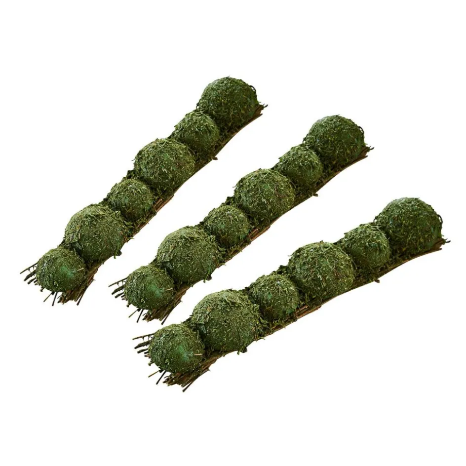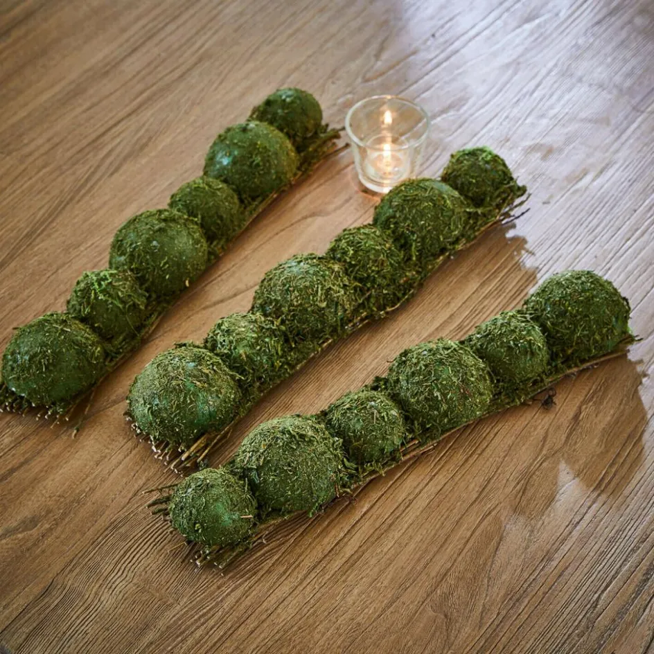 Wie frisch aus dem Wald geholt – so wirkt diese kunstvolle Girlande mit ihren dichten, moosgrünen Ballen auf rustikalen Rattanzweigen. Die Oberfläche aus echtem Moos spielt mit Texturen und natürlichen Akzenten, während die sanft gewölbten Formen das Auge wie kleine Waldhügel durch die Dekoration führen. Im Inneren sorgt ein formstabiler Schaumstoffkern dafür, dass sich saisonale Akzente wie Trockenblumen, Beerenzweige oder weihnachtliche Picks einfach hineindrücken lassen. Ob als Tischschmuck, Fenstersimsdekoration oder über dem Kaminsims – diese Girlande lädt dazu ein, sie immer wieder neu zu gestalten und zum individuellen Unikat zu machen.
