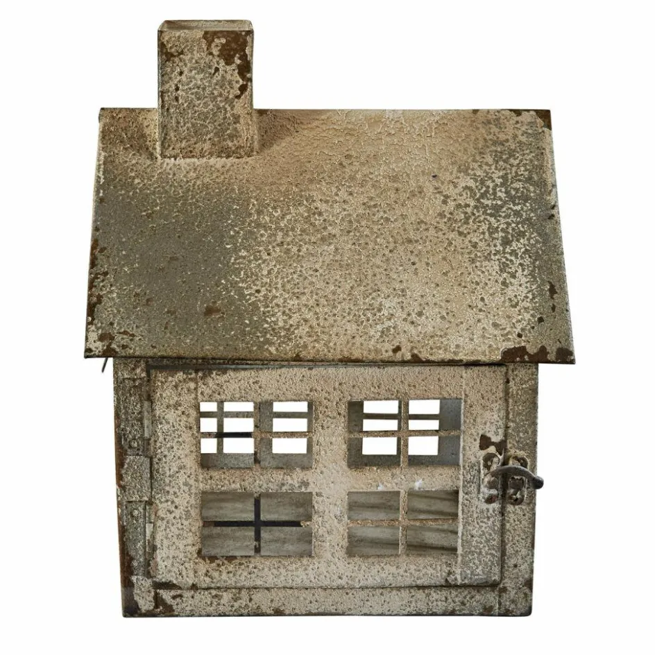 Wie aus einer anderen Zeit wirkt dieses kleine Eisenhaus, dessen Patina von frostigen Winternächten und warmem Kerzenschein erzählt. Die rustikale Oberfläche, mit ihrem gewollt gealterten Finish, unterstreicht den nostalgischen Charakter und erinnert an verschneite Abende im Kerzenlicht. Sobald ein Teelicht im Inneren entzündet wird, erwachen die ausgestanzten Fenster zum Leben: Zarte Lichtstrahlen tanzen über Wände und Möbel, tauchen den Raum in ein wohlig warmes Ambiente. Ob einzeln platziert oder als Teil eines winterlichen Ensembles – dieses Lichterhäuschen erzählt seine ganz eigene Geschichte.